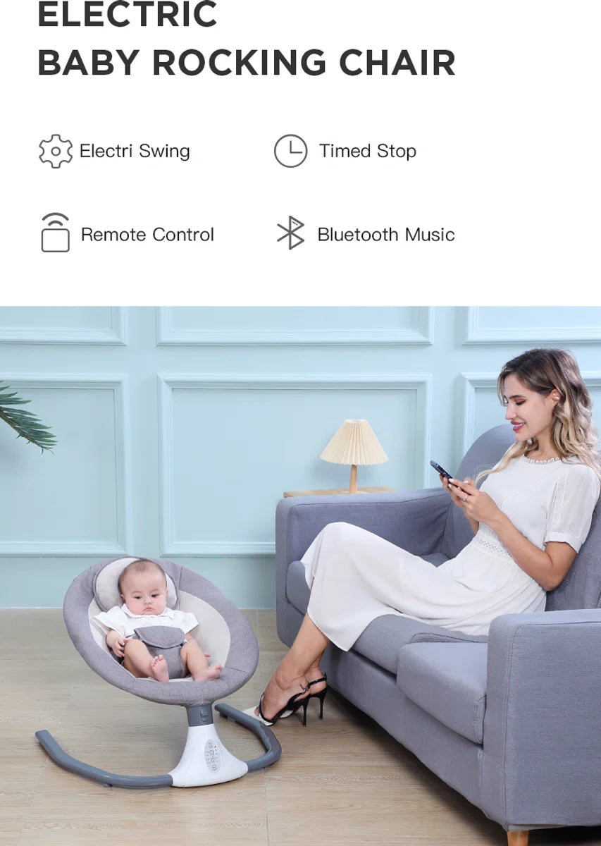 Ultieme Slimme Elektrische Wipstoel - Verstelbaar, Comfortabel en Stijlvol - Babyschommel voor Baby's - Grijs