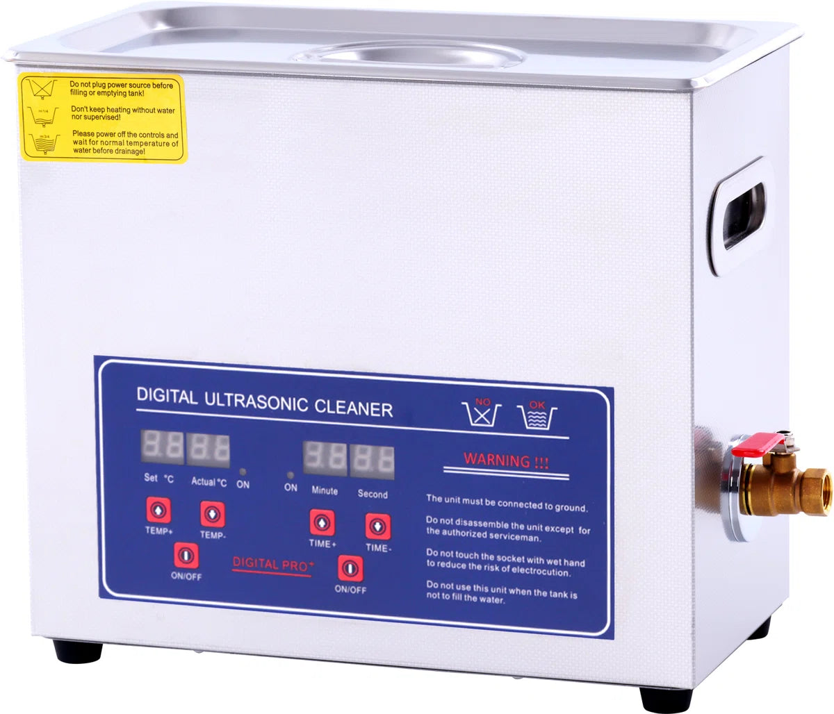 6 Liter Professionele ultrasoon reiniger met verwarming. Werkt zeer geschikt voor het reinigen en schoonmaken van motoronderdelen zoals carburateurs en injectoren. Maar ook voor duikonderdelen, geweren, sieraden en instrumenten. Ruimte voor middelgrote onderdelen of instrumenten en makkelijk te bedienen.