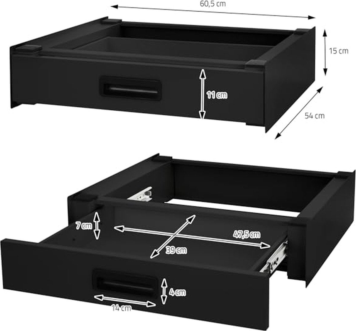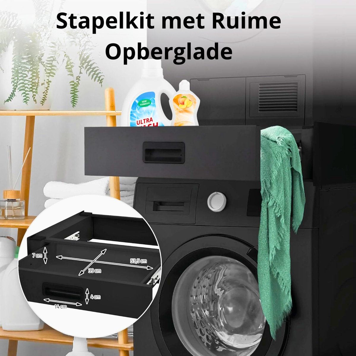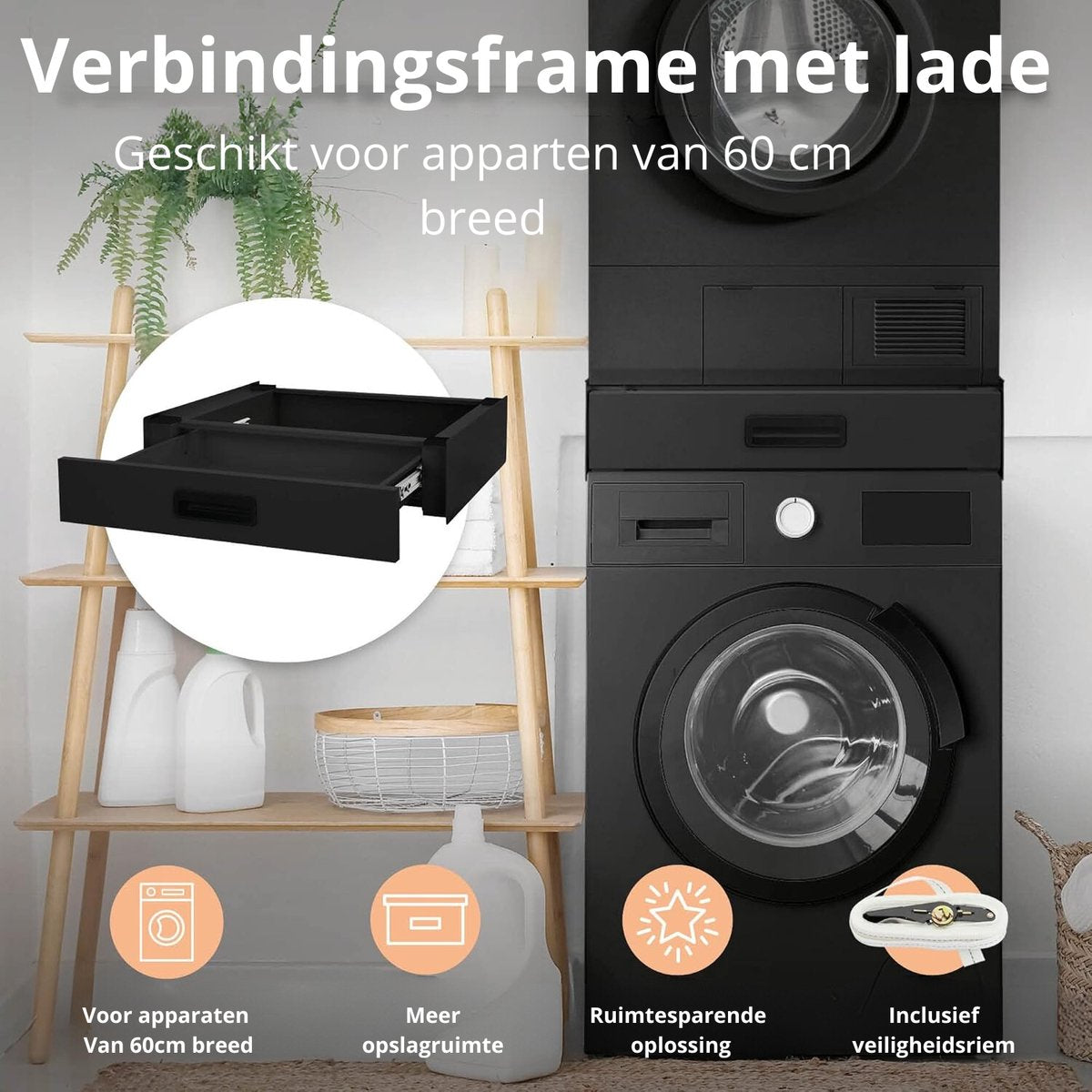 Universeel Stapelkit Wasmachine Droger Met Lade Zwart 60,5x54x15 - Tussenstuk Wasmachine Droger Voor Een Nette Wasruimte