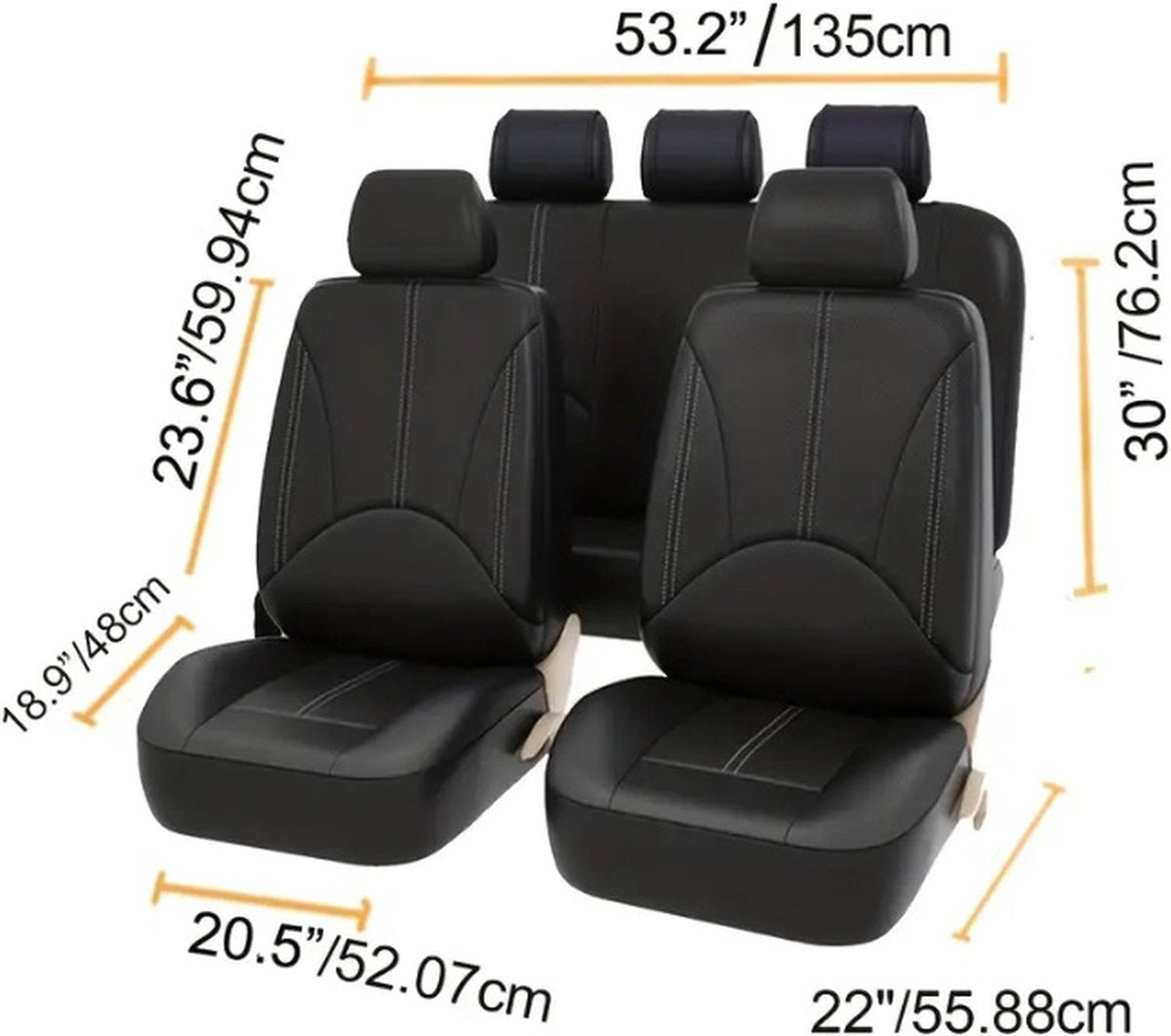 1x stoelhoes voor (links) 1x stoelhoes voor (rechts) 5x hoes voor hoofdsteunen voor en achter 1x achterbank hoes 1x rugleuning hoes Allemaal verpakt in een esthetische tas