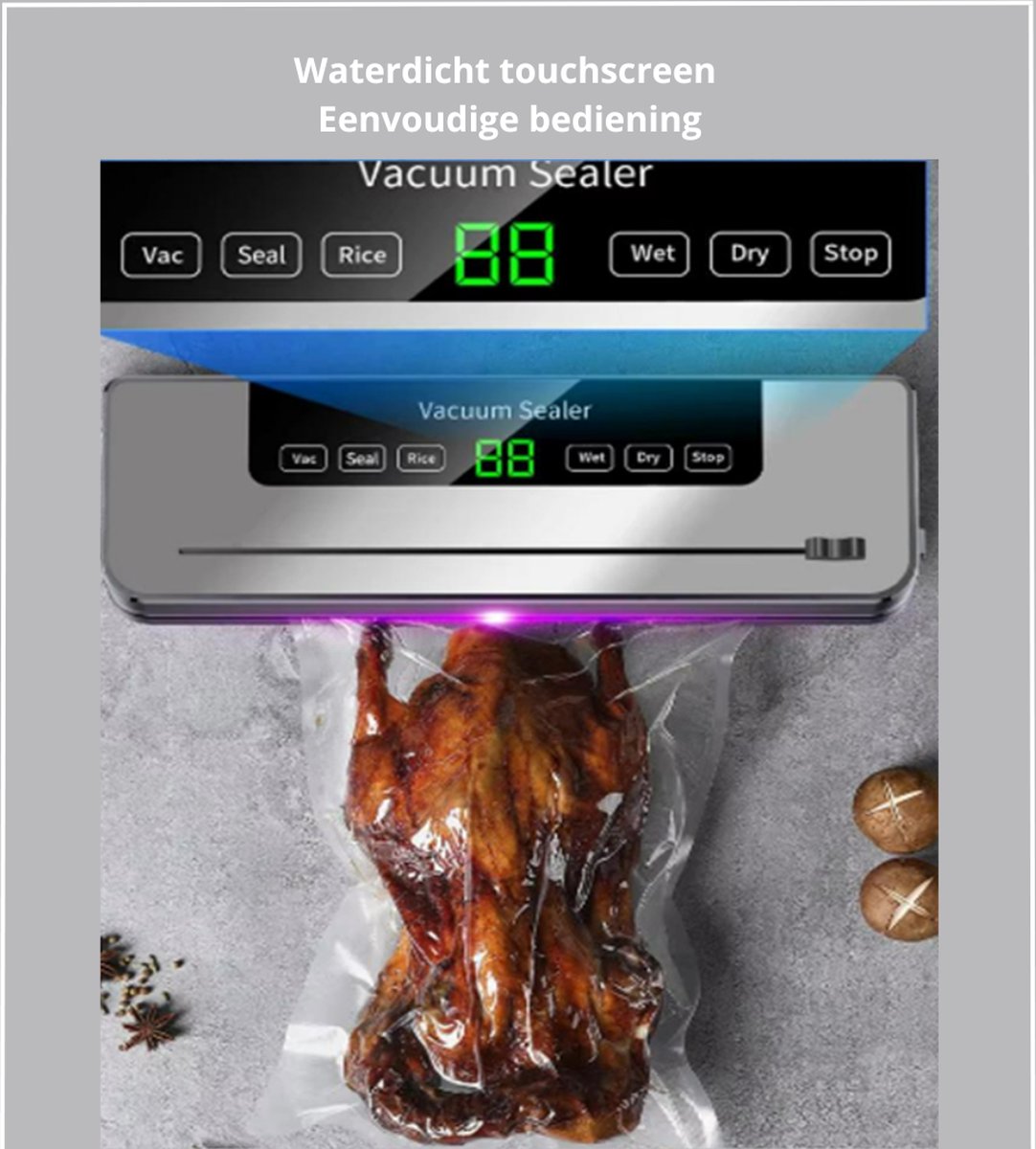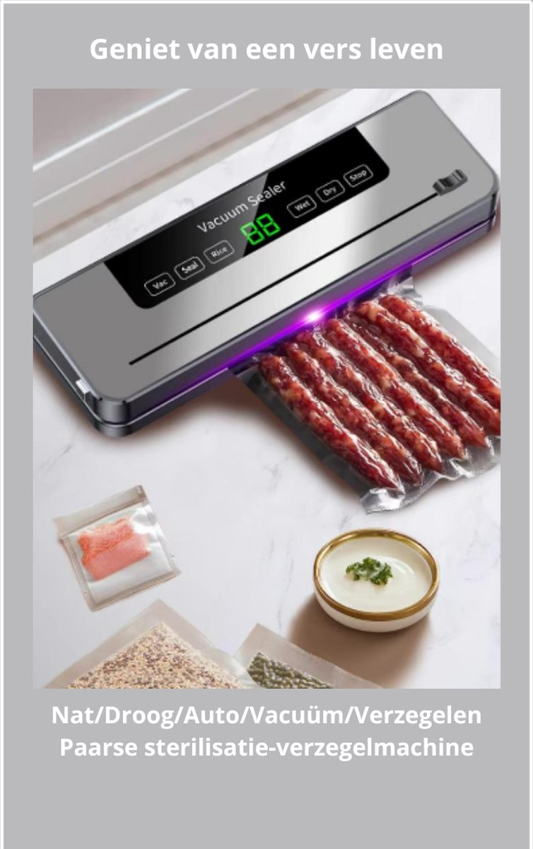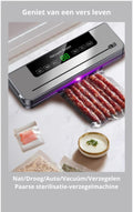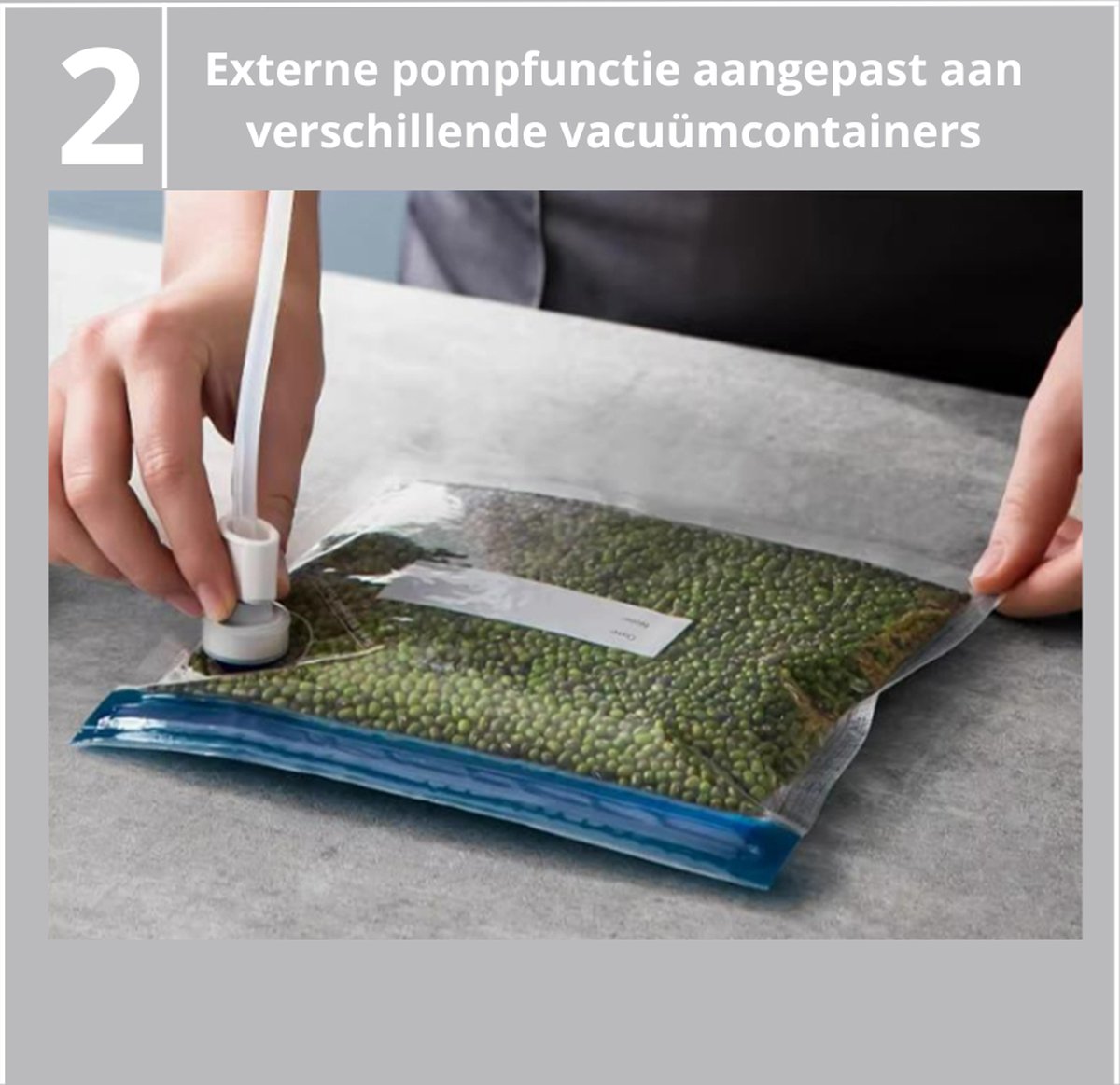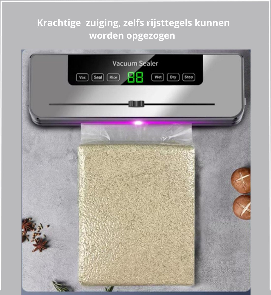 - Multifunctioneel gebruik: Geschikt voor het vacumeren van zowel droge als natte voedingsmiddelen.