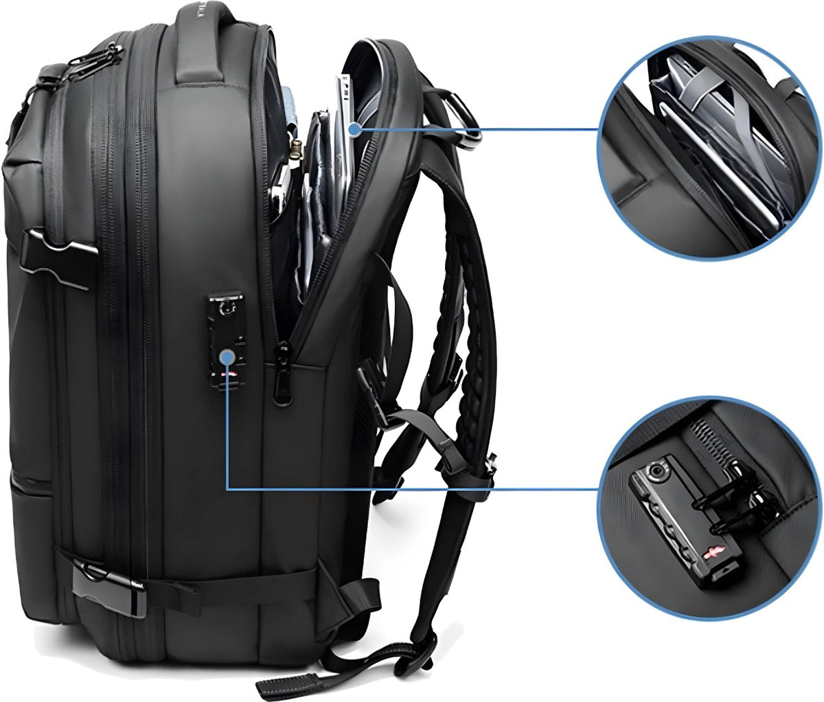- Comfort en veiligheid: Ervaar ultiem comfort met ademende schuim rug panelen en schouderbanden die de belasting op lange reizen minimaliseren. Met functies zoals een anti-diefstal rits zak en toegangswachtwoord, zijn je spullen altijd veilig en beschermd.