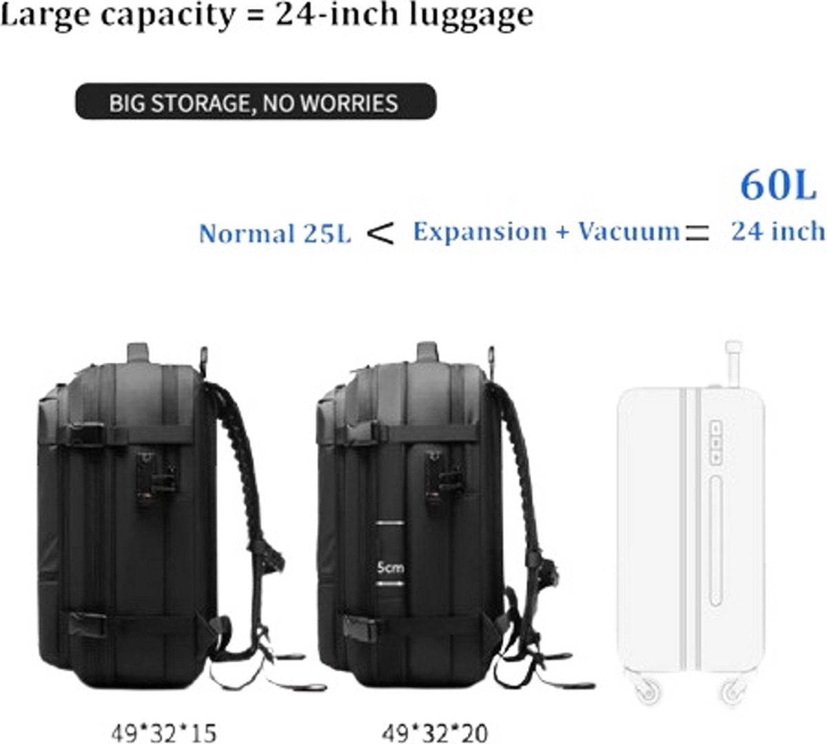 Vacuüm Rugzak - Airbag - Reistas - Handbagage - Grote Reisrugzak voor Dames en Heren