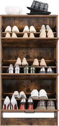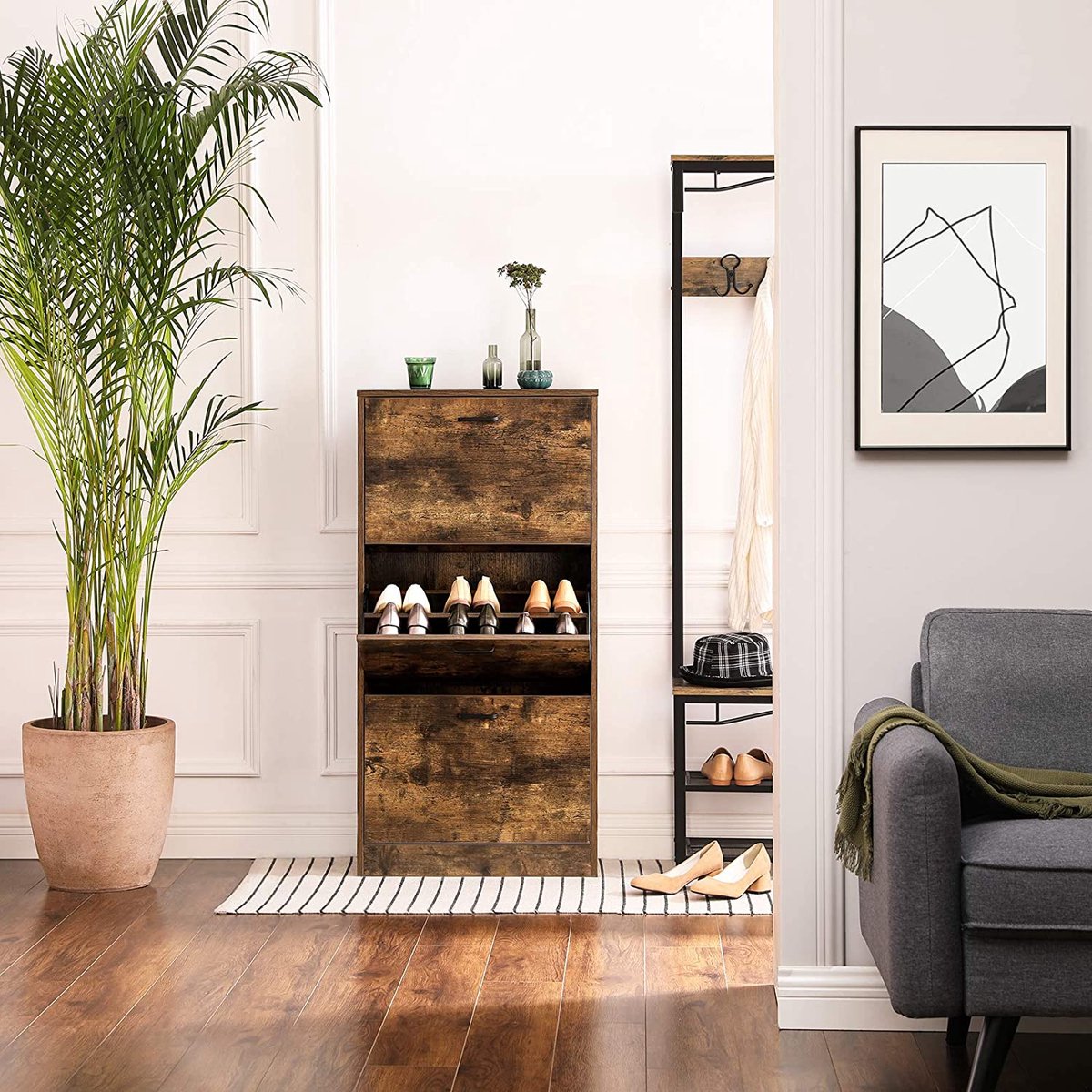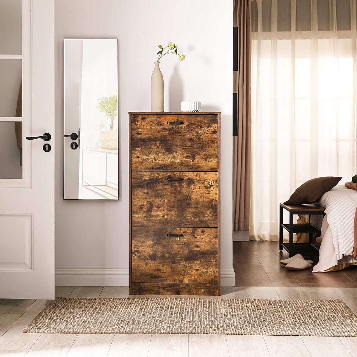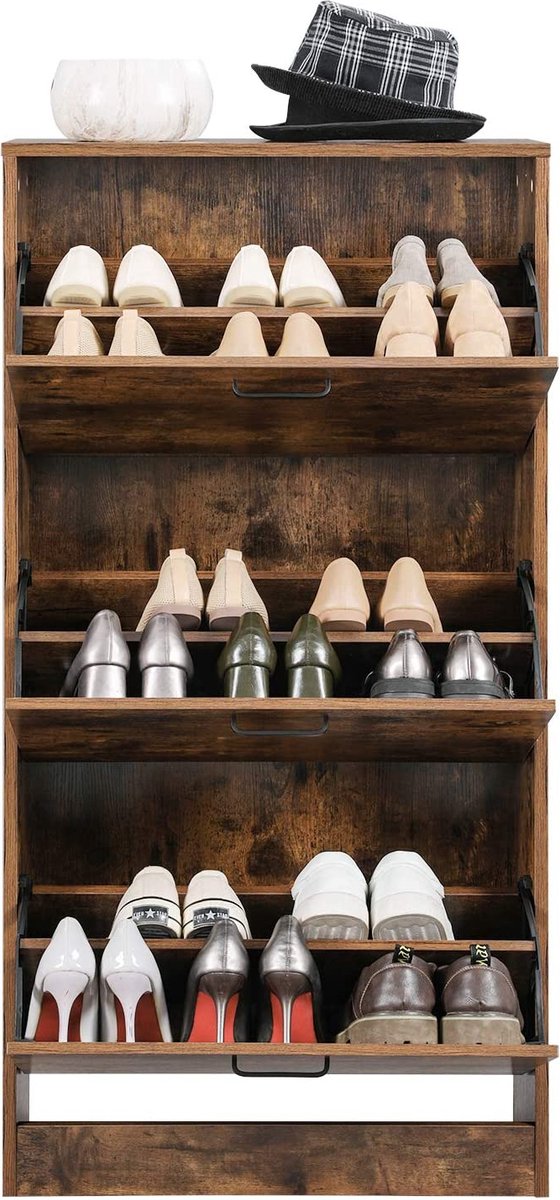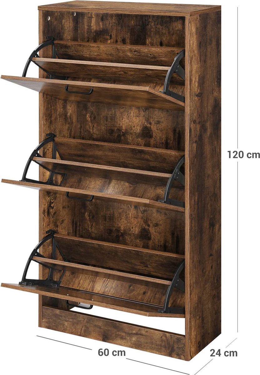VASAGLE Schoenenkast met 3 kleppen, schoenenrek met 3 niveaus, opbergkast, perfect voor smalle gangen, woonkamer, slaapkamer, 60 x 24 x 120 cm (l x b x h), vintage bruin LBC030X01