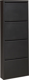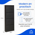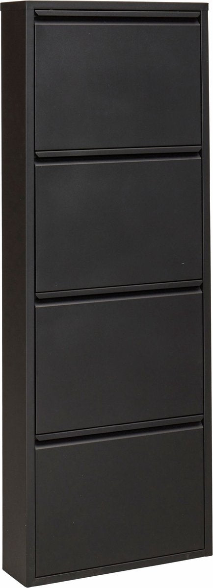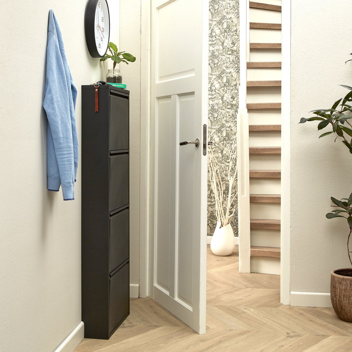 Ideaal voor smalle ruimtes, biedt hij met zijn vier kantelvakken ruimte voor maximaal acht paar schoenen en is daardoor zeer ruimtebesparend. Door zijn moderne en eenvoudige design is hij een geweldige blikvanger en past hij bij elk interieur.