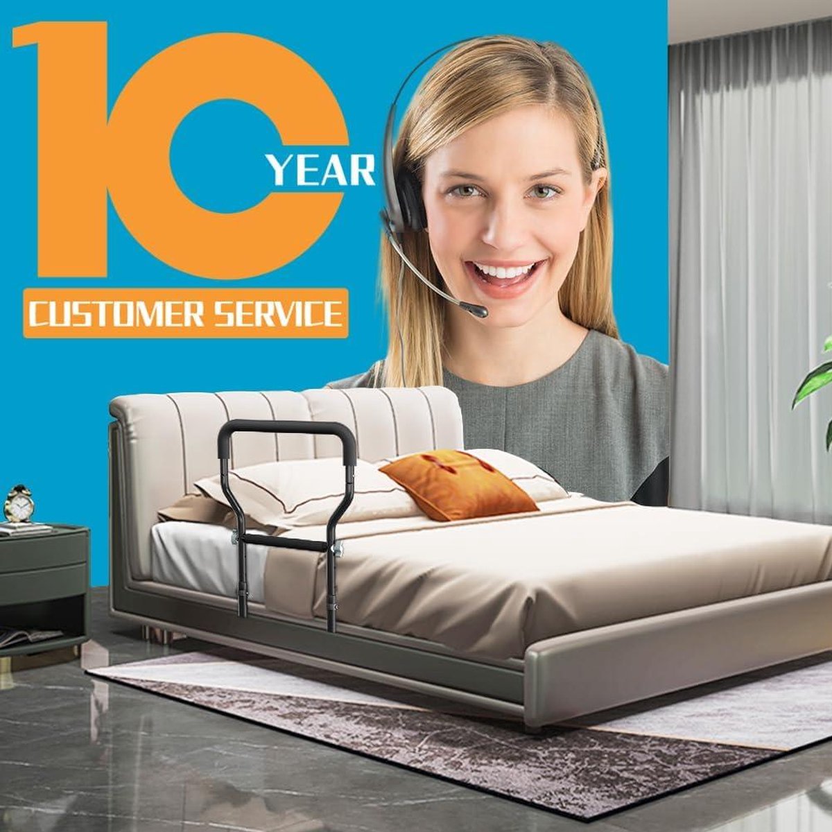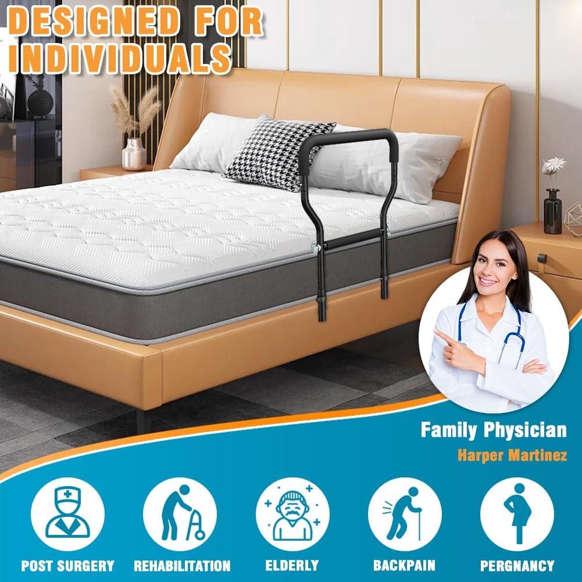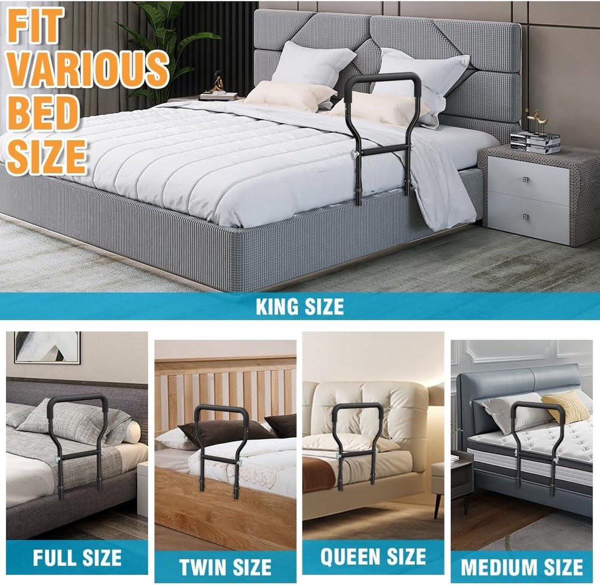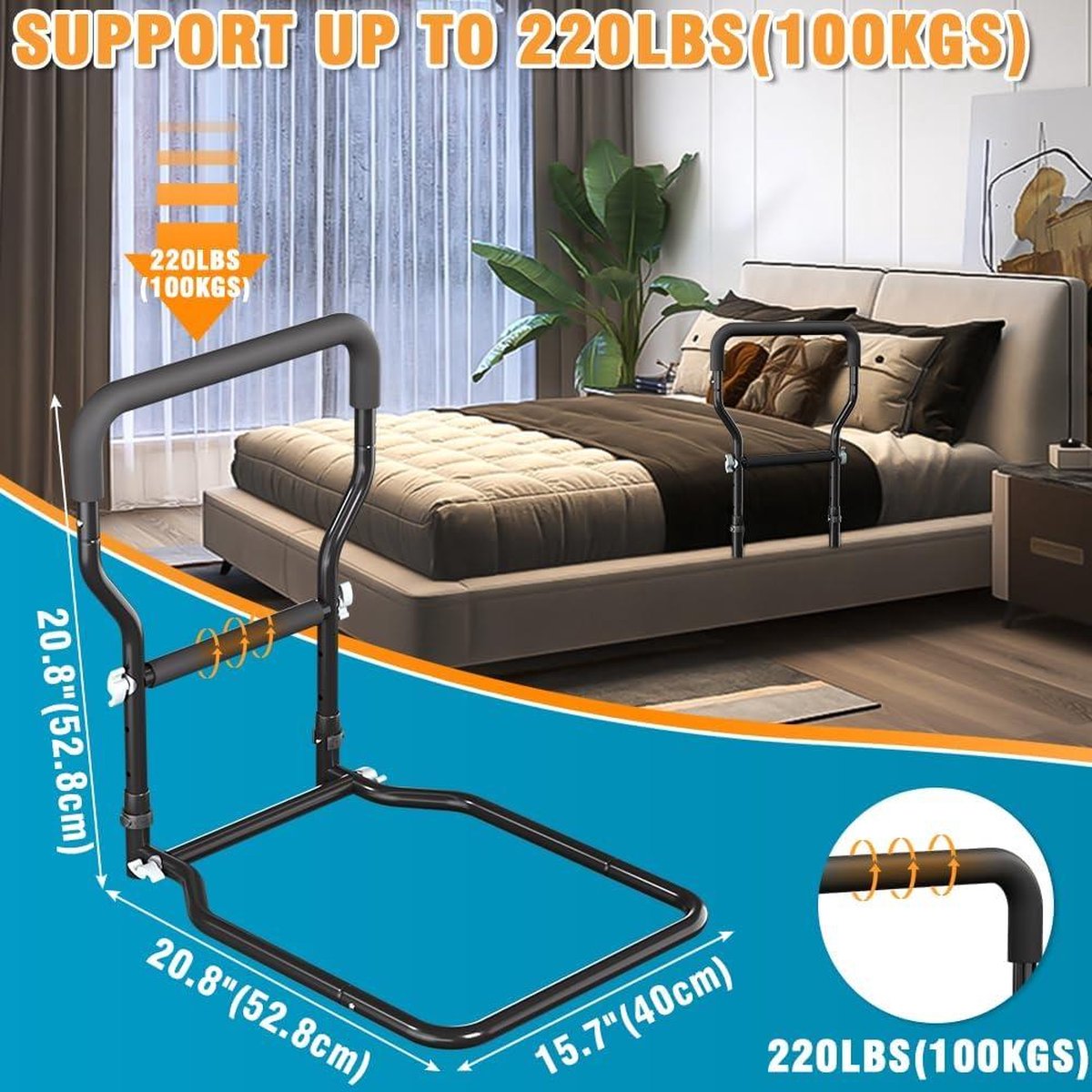 Deze bedrails zijn essentieel voor ouderen en volwassenen die extra ondersteuning nodig hebben bij het in- en uitstappen van bed. Met deze bedrails kunnen ze veilig en zelfstandig blijven, waardoor hun kwaliteit van leven wordt verbeterd.Voordelen: - Biedt extra ondersteuning en veiligheid bij het in- en uitstappen van bed - Verbetert de zelfstandigheid van ouderen en volwassenen - Voorkomt vallen en letsels tijdens het bewegen in bed - Eenvoudig te bevestigen en aan te passen aan verschillende bedmatenDeze bedrails zijn duurzaam, veilig en gemakkelijk te installeren. Ze zijn geschikt voor de meeste bedmaten en kunnen eenvoudig worden aangepast aan de behoeften van de gebruiker. Met deze bedrails kunnen ouderen en volwassenen met mobiliteitsproblemen genieten van een goede nachtrust en meer onafhankelijkheid.Productspecificaties: - Materiaal: stevig metaal - Afmetingen: 50 cm x 30 cm - Geschikt voor: alle standaard bedmaten - Kleur: wit - Inclusief bevestigingsmateriaal