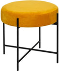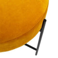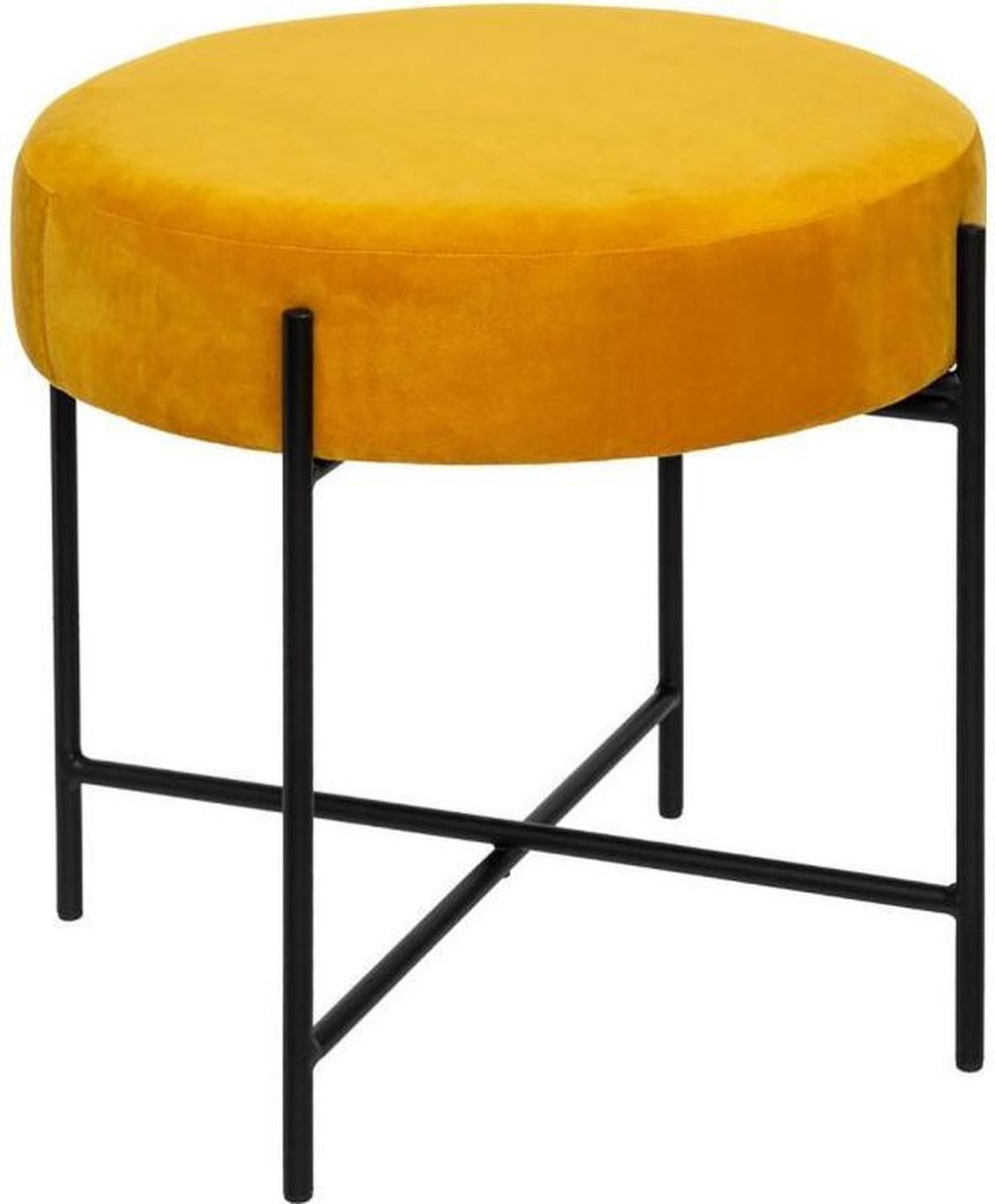 Velvet Poef/Voet bankje Oker Geel met Zwarte Onderstel – Ø 47 x H 45 cm