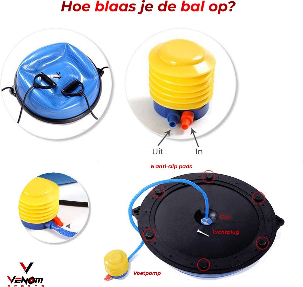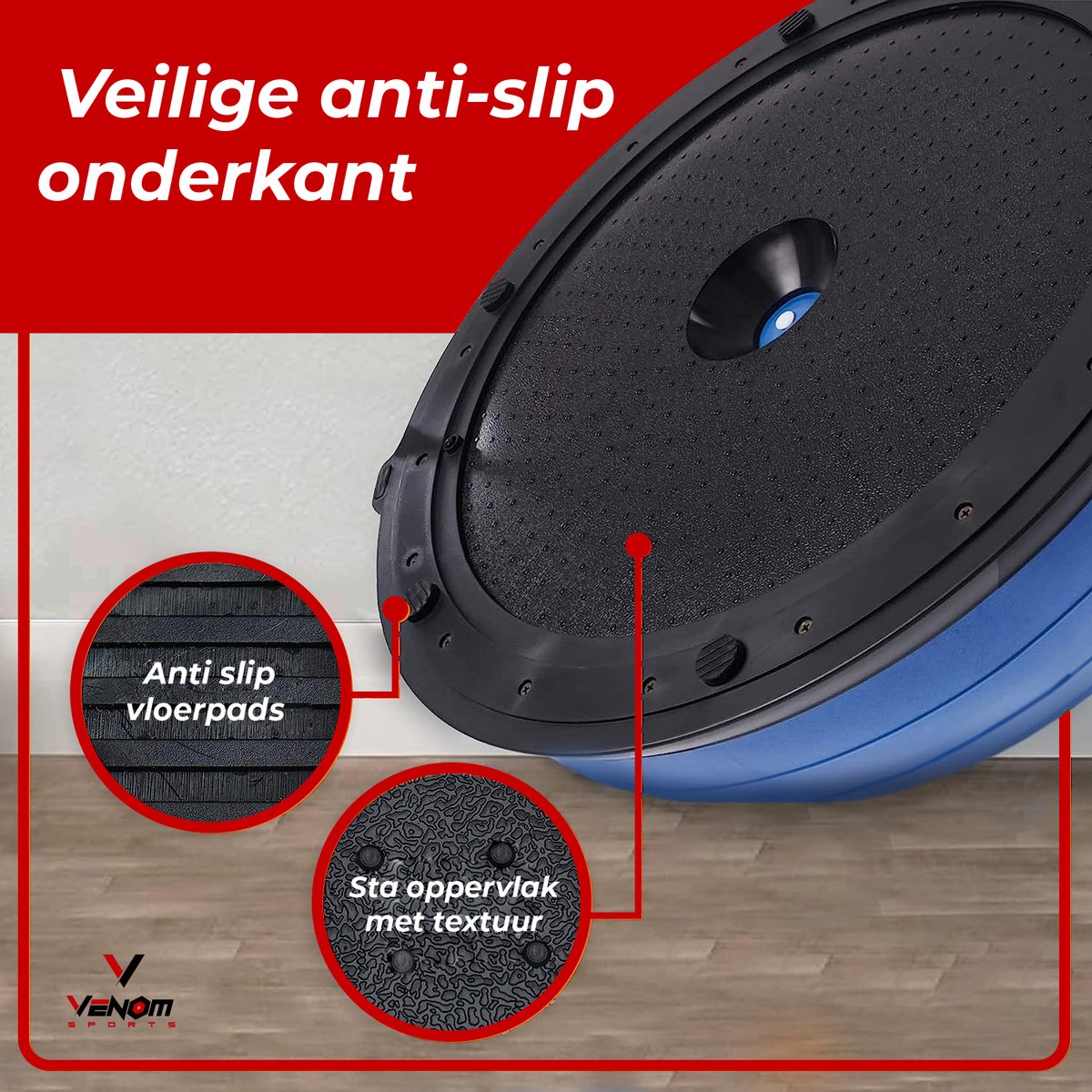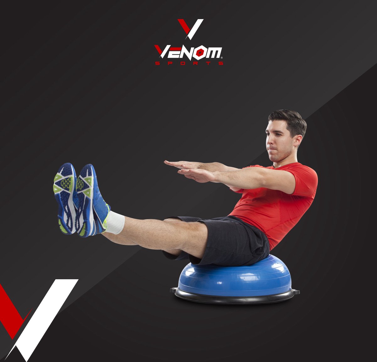 Voel je fit en energiek met de Venom Sports® X-BALL! Deze unieke balanstrainer legt de klemtoon op stabiliteit en een verbeterde balans. Of je nu thuis traint of op locatie, deze halve yoga-bal is perfect om te rekken en strekken, evenals voor pilates, stabiliteitstraining en full body workouts. Oefen je lichaam zowel letterlijk als figuurlijk met deze stevige bal die stand houdt bij elke beweging.
