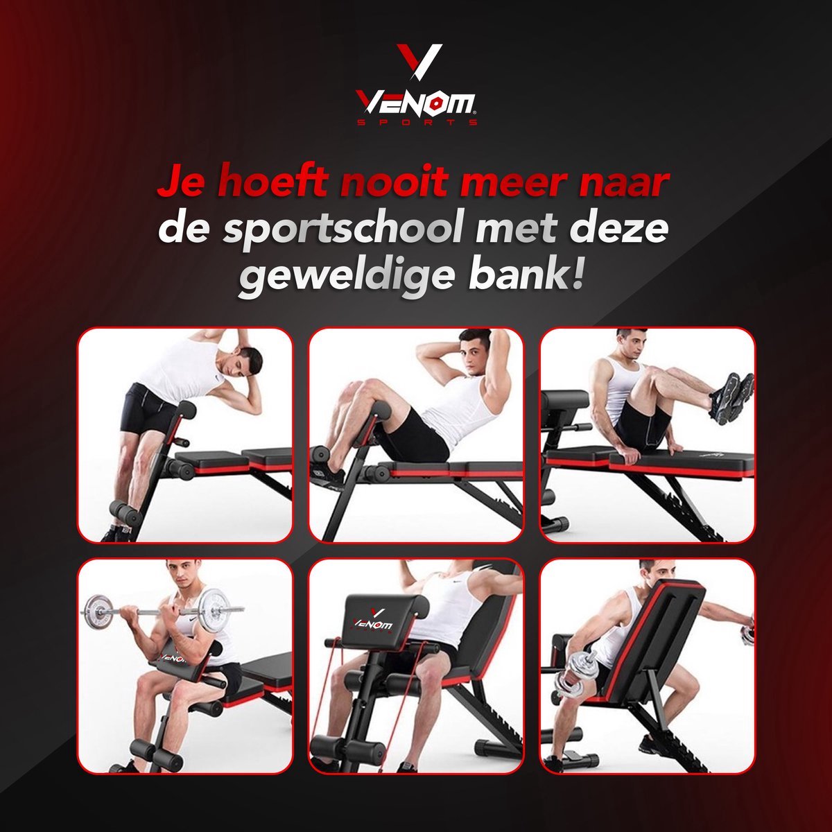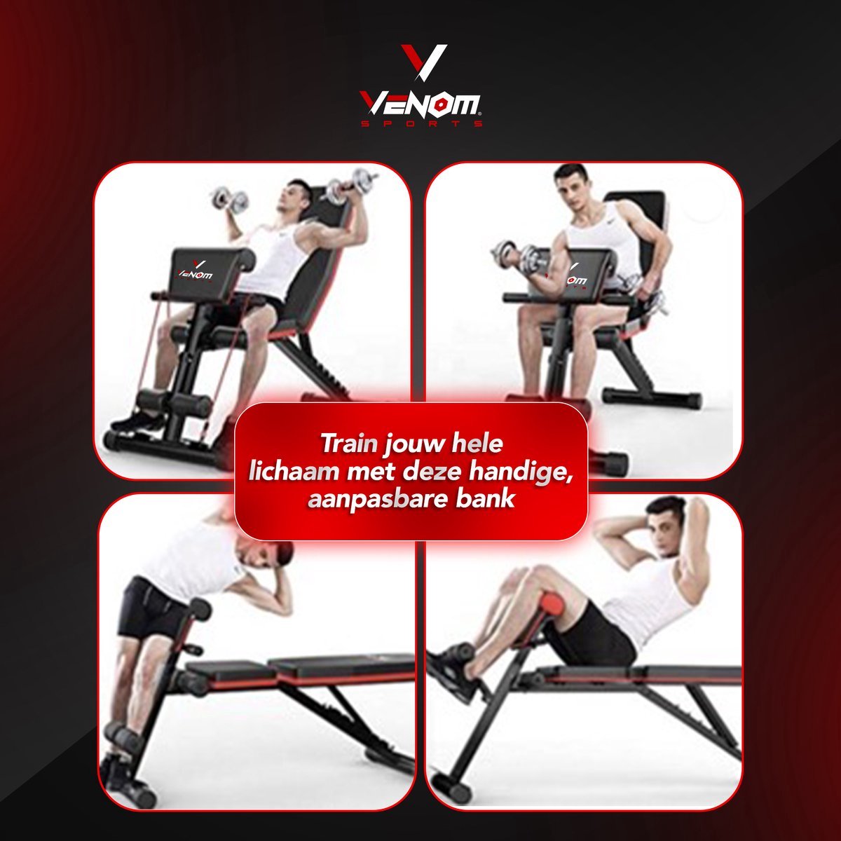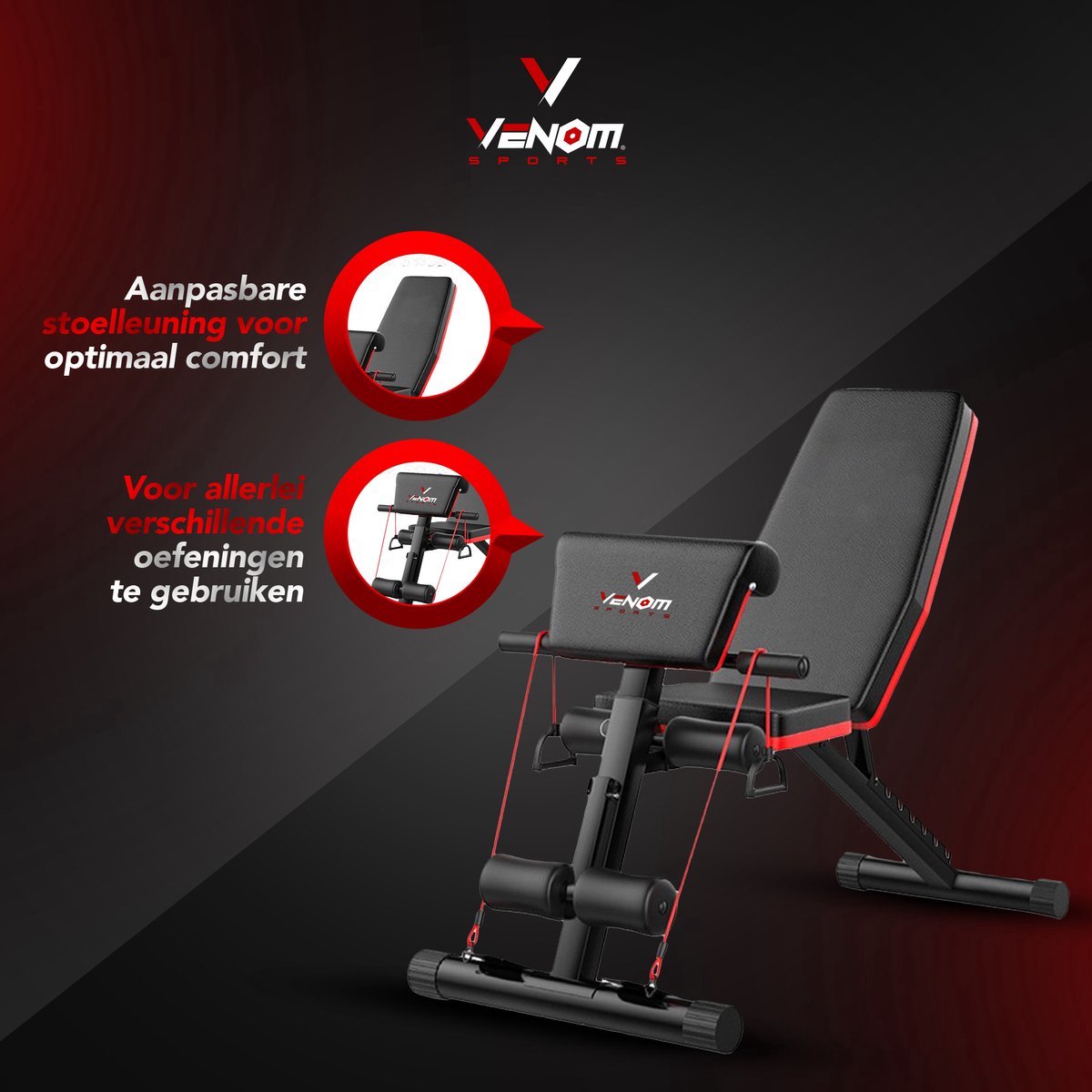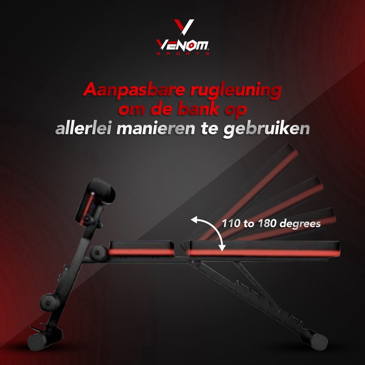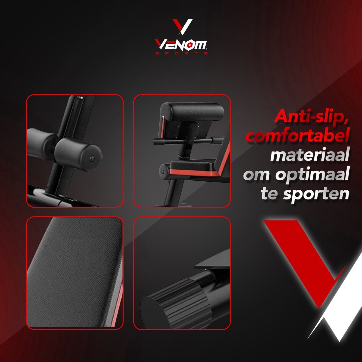 Venom Sports 4 in 1 multifunctionele trainingsbank - geschikt voor trainen van bicep, borst, onderrug en buik - fitnessbank - bench press - trainingsbank - zwart/rood