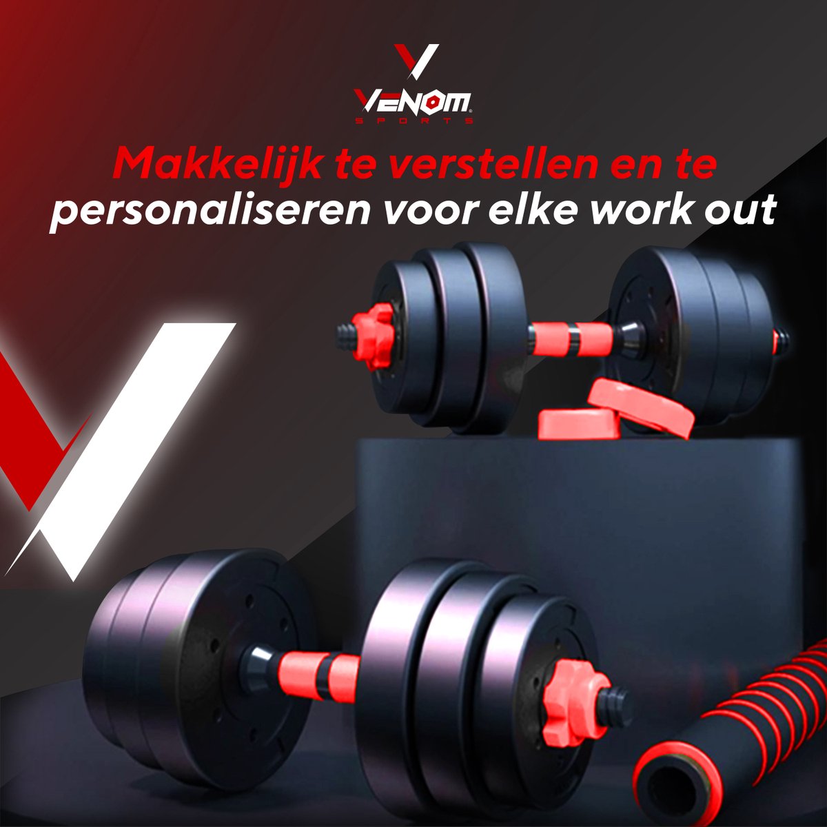 De Venom Sports verstelbare dumbbell set 20kg bestaat uit: