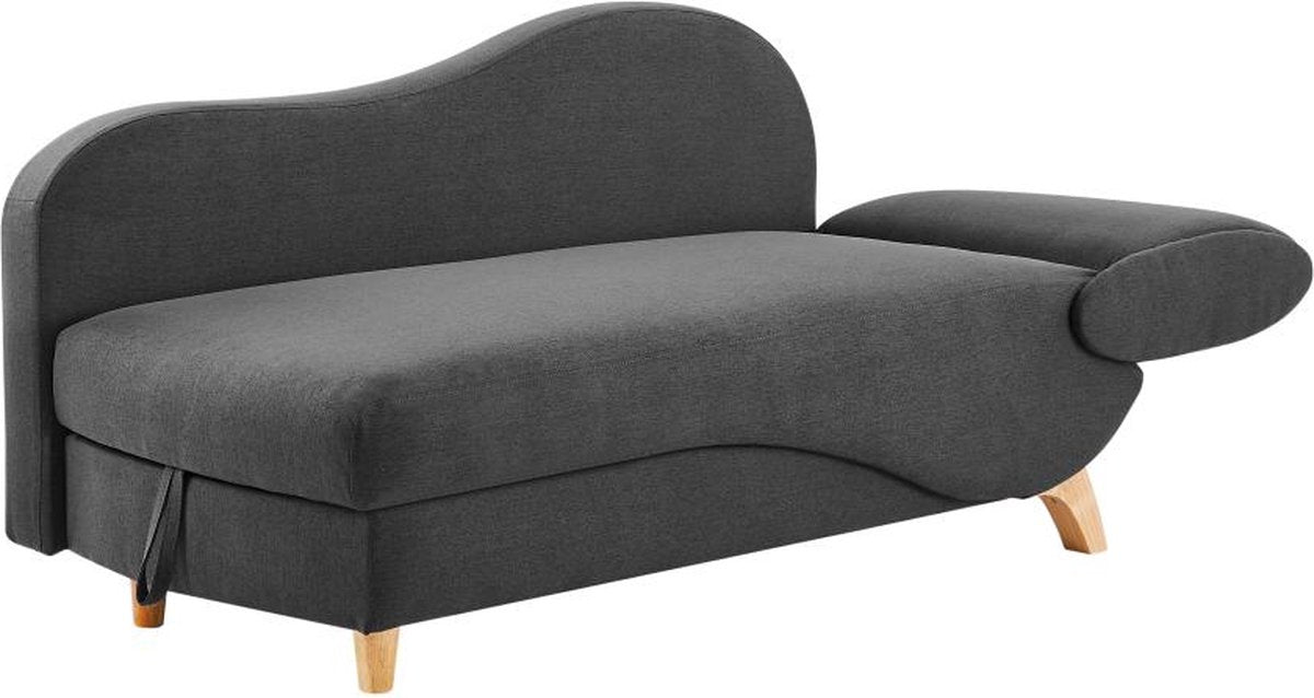 Vente-unique Slaapbank van antraciete stof met opbergruimte - Hoek links - PENELOPE L 160 cm x H 81 cm x D 80 cm