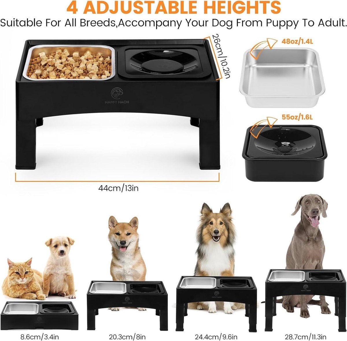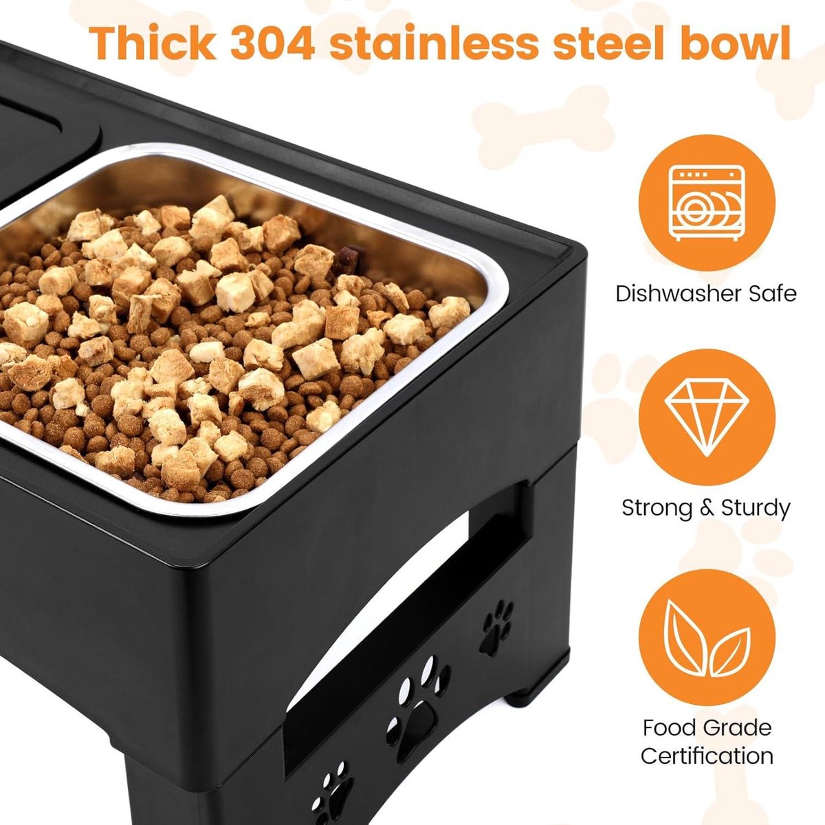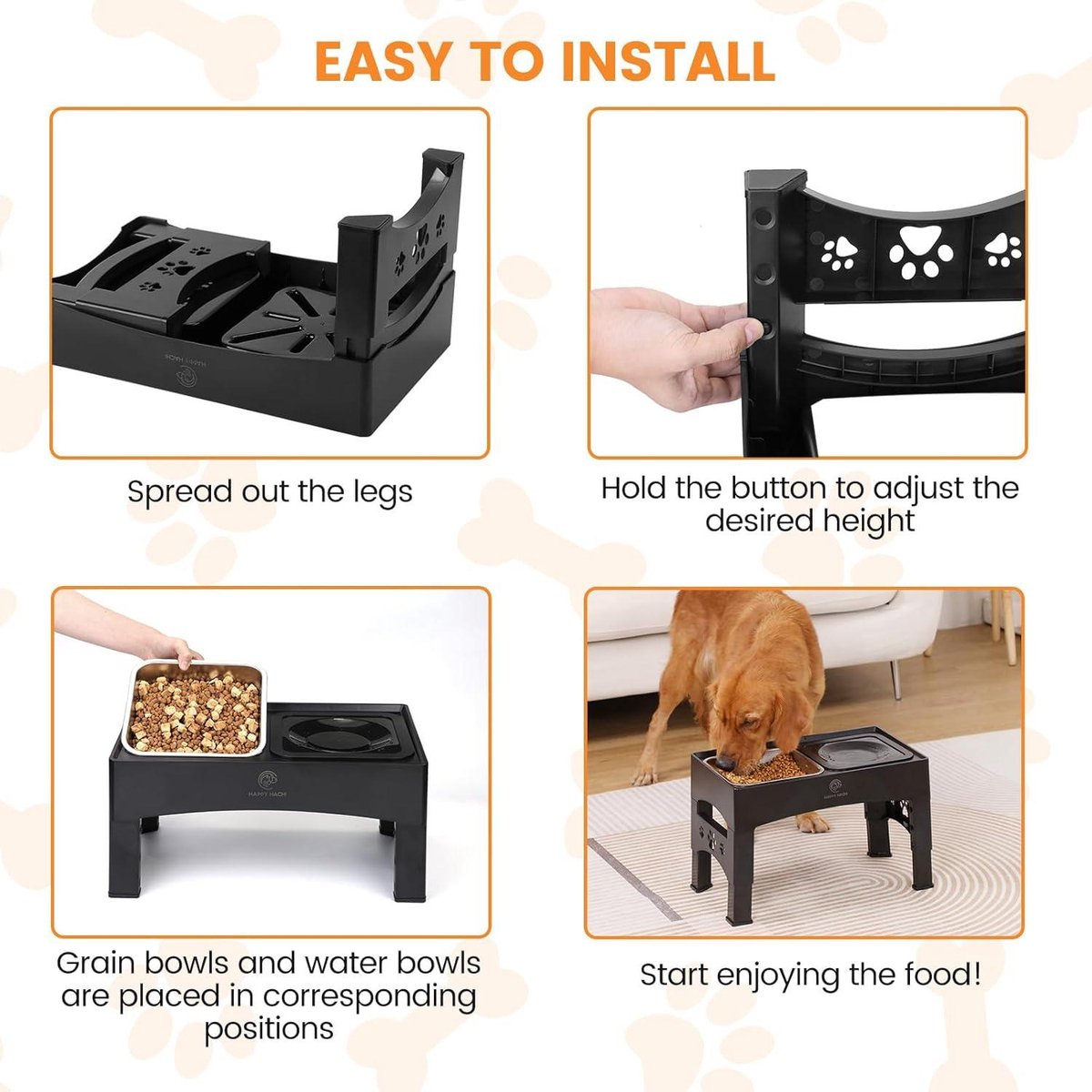 Deze hondenvoerbak heeft vier instelbare hoogte-instellingen, variërend van 3,4 inch tot 11,3 inch, waardoor u de hoogte eenvoudig en zonder gereedschap kunt aanpassen. Dit zorgt ervoor dat uw hond in de juiste houding kan eten, wat de druk op gewrichten en botten verlicht.