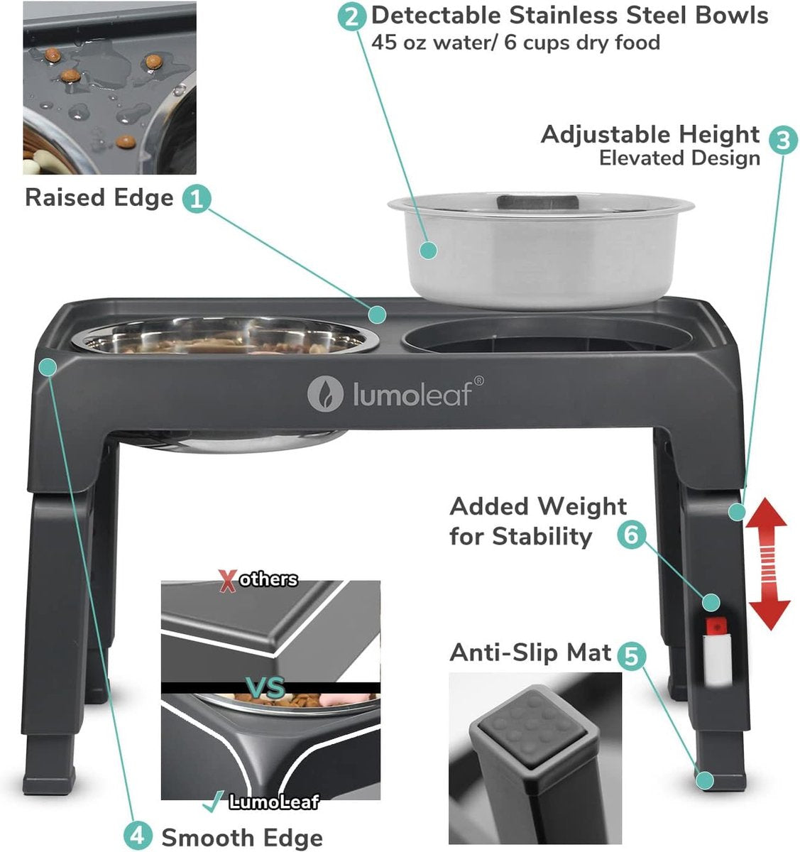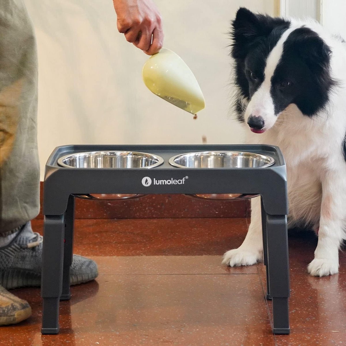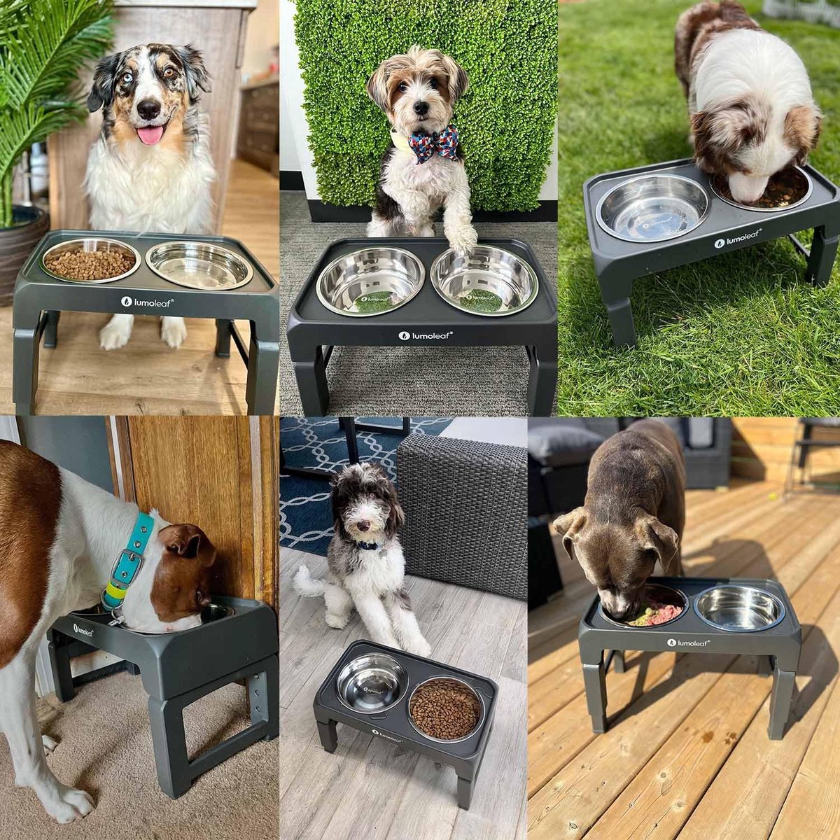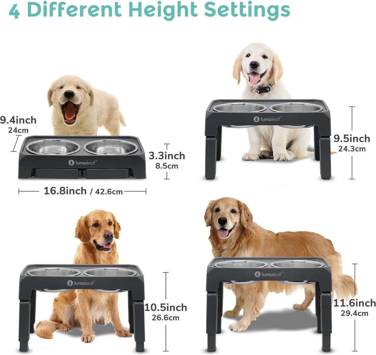 Deze verhoogde hondenvoerbak met vier verstelbare hoogtes is de ideale oplossing voor honden van alle leeftijden en maten. Of je nu een puppy hebt of een oudere hond, deze voerbak kan eenvoudig worden aangepast aan de behoeften van je huisdier. Gezonde Spijsvertering: Dankzij het verhoogde ontwerp helpt deze voerbak om de stress op de gewrichten en botten van je hond te verminderen en bevordert het een gezonde spijsvertering. Dit zorgt voor een comfortabelere eetervaring voor je trouwe viervoeter. materialen en wordt geleverd met twee afneembare roestvrijstalen schalen van elk 1.3 liter. Deze schalen zijn vaatwasmachinebestendig, waardoor schoonmaken een fluitje van een cent is. Met een antislip witte rubberen rand onder de voerbak en een extra gewicht blok in de standaard, biedt dit product uitstekende stabiliteit tijdens het eten. Gemorst Water en Voedsel Opgangen: De verhoogde randen rondom de standaard vangen gemorst water of voedsel op, terwijl de gladde randen de veiligheid van zowel mensen als huisdieren garanderen. Eenvoudig Te Installeren en Op Te Bergen: Deze hoge hondenvoerbak is zonder gereedschap te monteren - druk gewoon op de knop om de hoogte aan te passen. Dankzij het opvouwbare ontwerp neemt hij weinig ruimte in beslag en is hij gemakkelijk mee te nemen op reis. De handige verhoogde randen van de voerbak maken het oppakken en schoonmaken eenvoudig. Kortom, deze veelzijdige verhoogde hondenvoerbak biedt niet alleen comfort en gemak voor je hond, maar ook voor jou als eigenaar. Een slimme investering voor een gelukkige en gezonde levensstijl van je huisdier.
