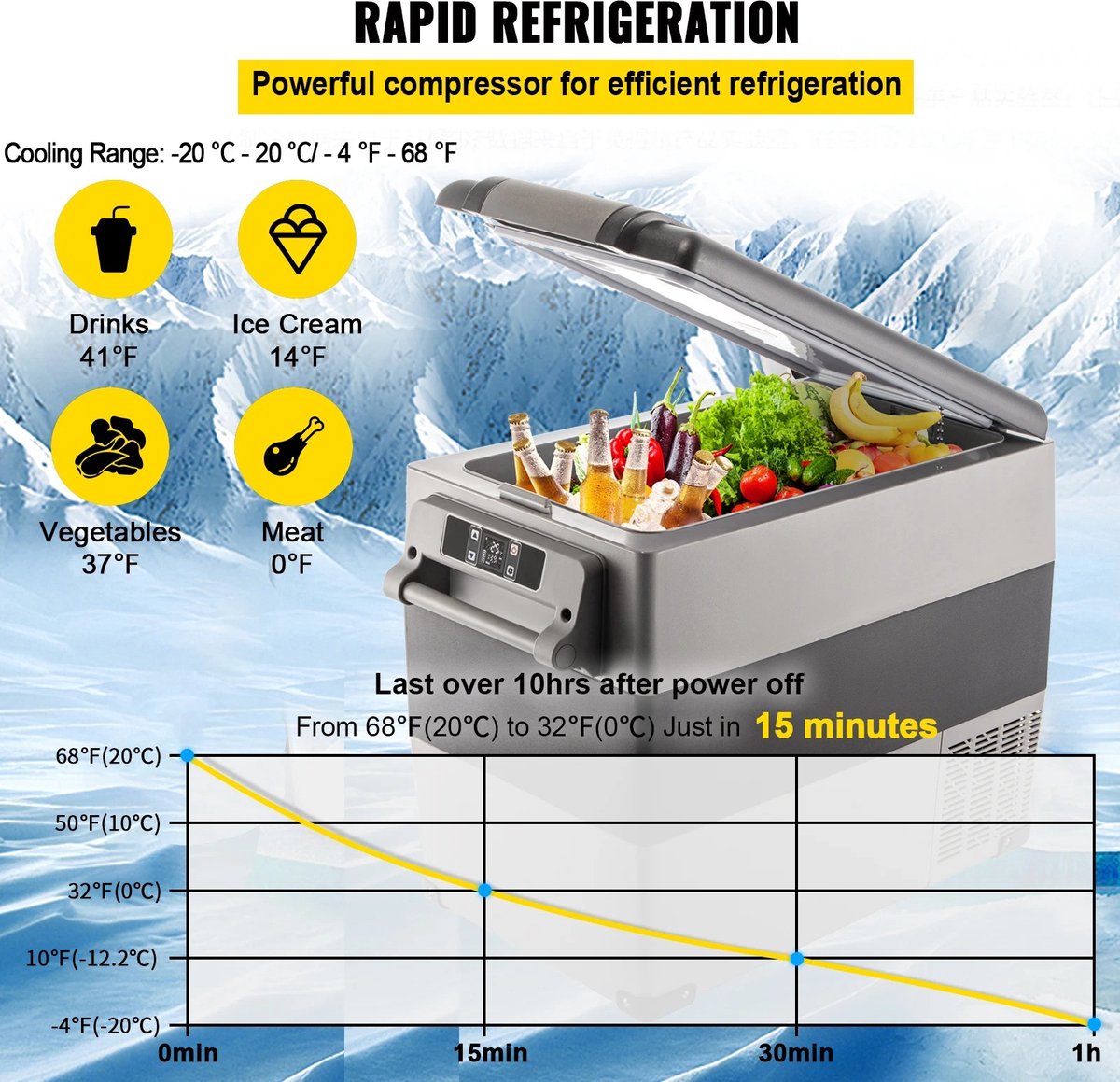 - Compressortechnologie: Bereikt snel koeling van -20℃ tot 20℃, waardoor je voedsel en drankjes snel gekoeld worden.