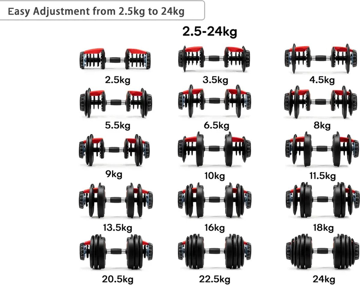 Verstelbare Dumbbell 24 kg - Verstelbare Gewichten - Adjustable Dumbbell - 2.5kg t/m 24kg - 15 DUMBBELLS IN ÉÉN - Zwart