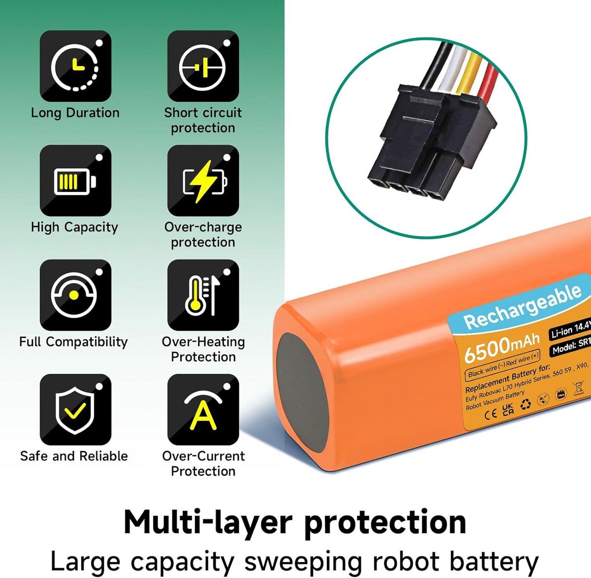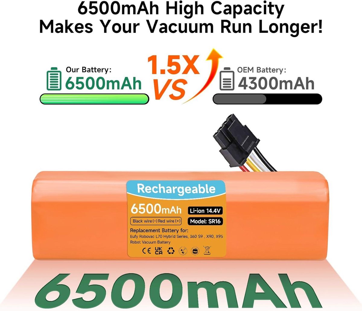 Upgrade de prestaties van je Eufy RoboVac stofzuiger met deze krachtige en betrouwbare oplaadbare lithium-ionbatterij. Met een hoge capaciteit van 6500 mAh biedt deze batterij een langere levensduur en zorgt voor een langere gebruiksduur van je stofzuiger.