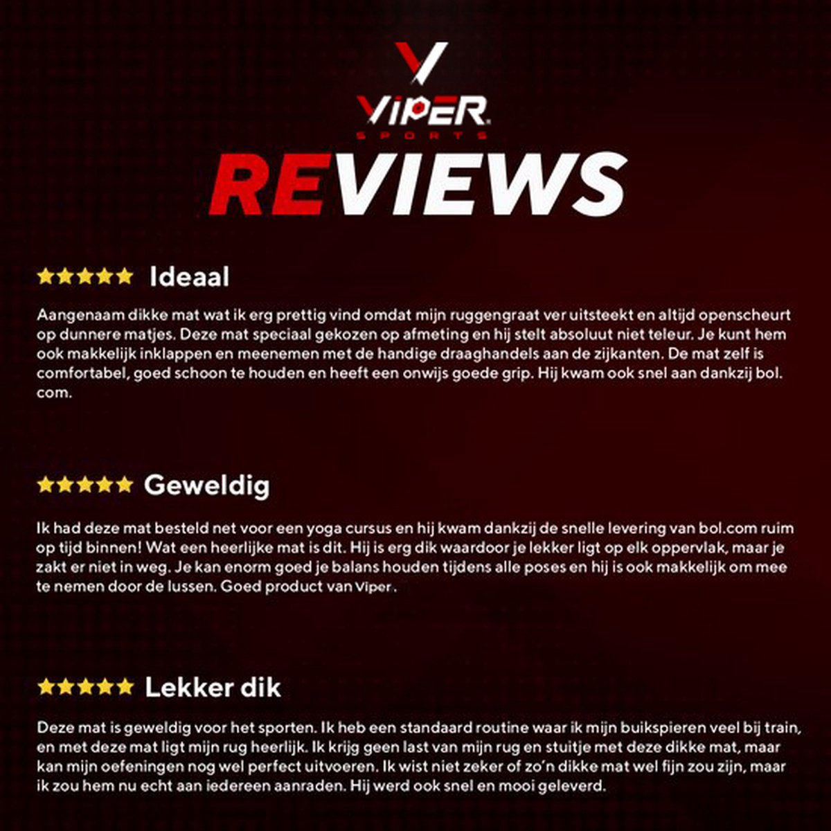 • Deze sportmat van Viper Sports is gemaakt van antislip materiaal, zodat u niet wegglijd tijdens het sporten.