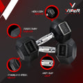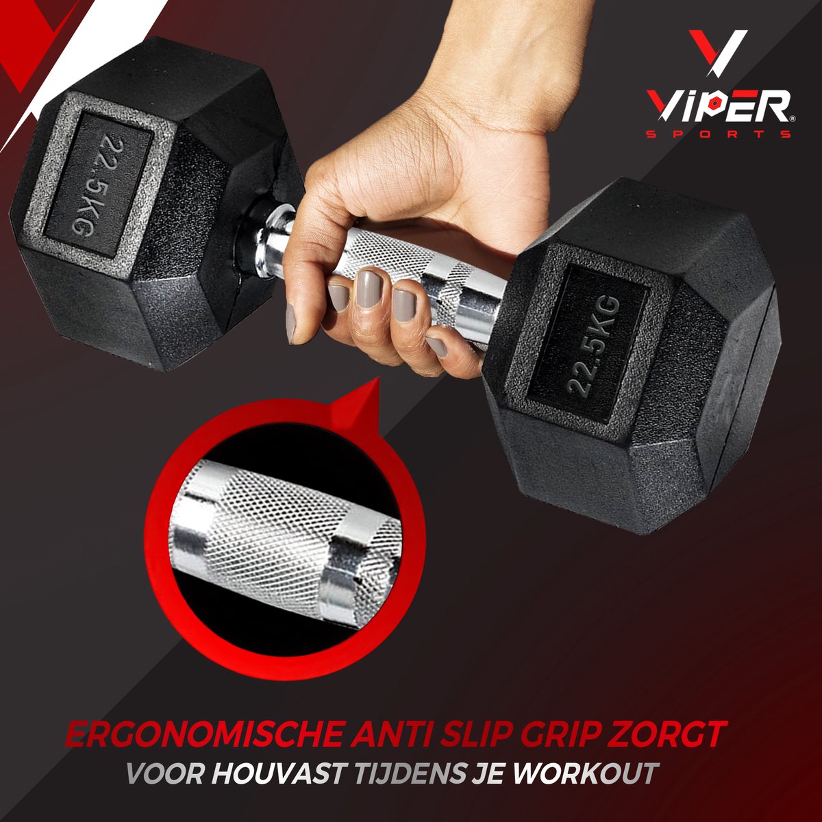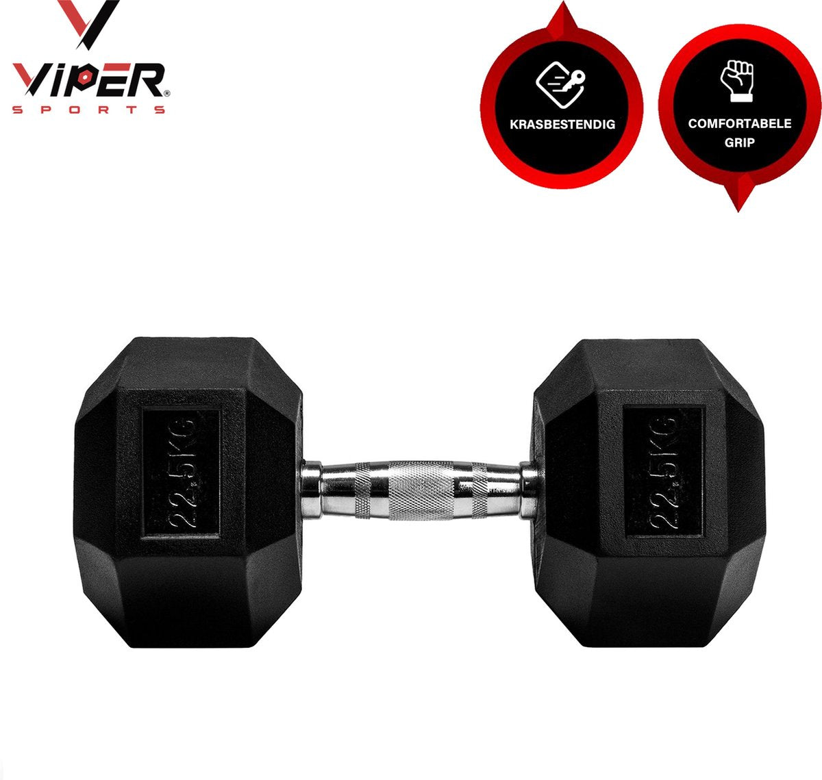 Viper Sports Iron Black Gewicht 22.5 kg – Dumbbells – Anti-slip – Zeshoek design – Hexagon-Design - RVS/Rubber – Zilver/Zwart - 1 Stuks