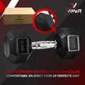 De Iron Black dumbbells van Viper Sports zijn de ultieme keuze voor sportscholen en serieuze thuisgyms. Ontworpen voor intensieve workouts, bieden deze dumbbells ongeëvenaarde veelzijdigheid. Dankzij de rubberen omhulling kun je ze zonder zorgen laten vallen, gooien of smijten, waardoor ze ideaal zijn voor snelle en intense oefeningen zoals die bij Crossfit. Bovendien zijn ze gebouwd om lang mee te gaan. De fijne grip van het ijzeren handvat zorgt voor comfort tijdens elke herhaling, terwijl de zeshoekige vorm voorkomt dat de dumbbells zomaar wegrollen.