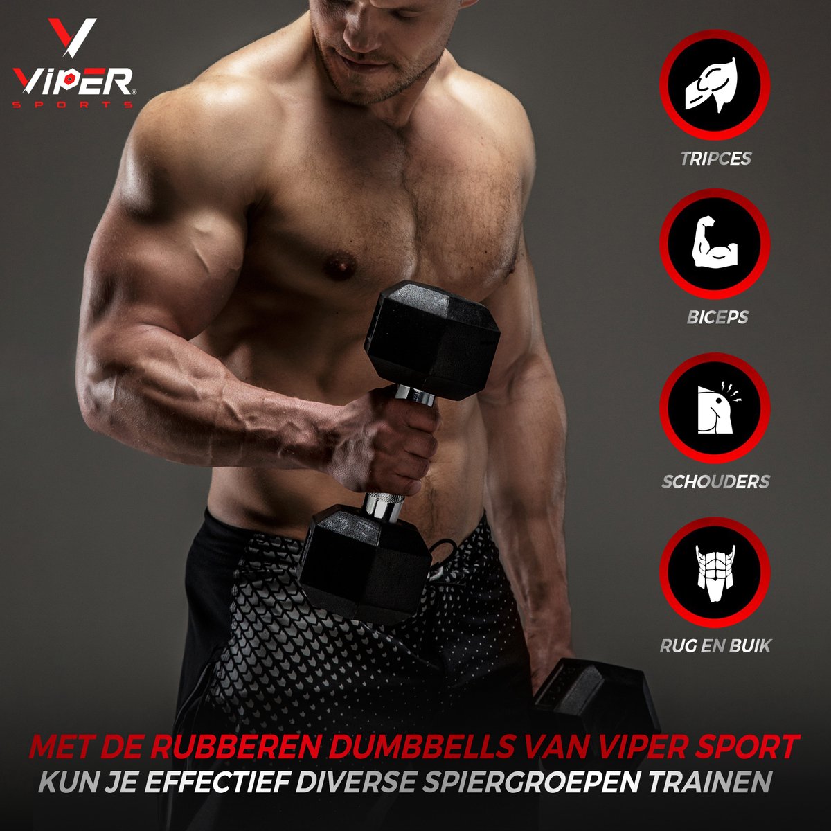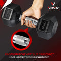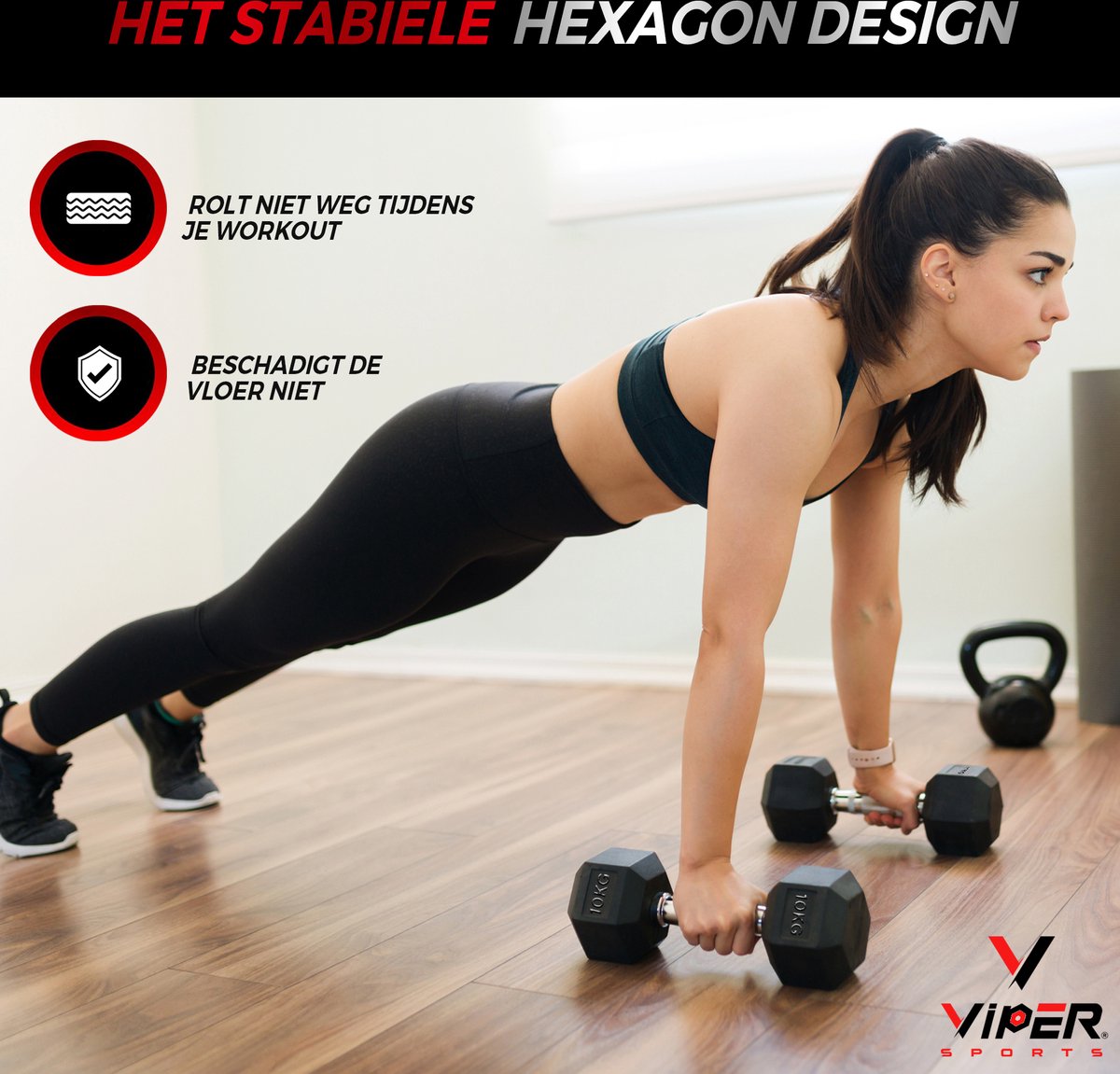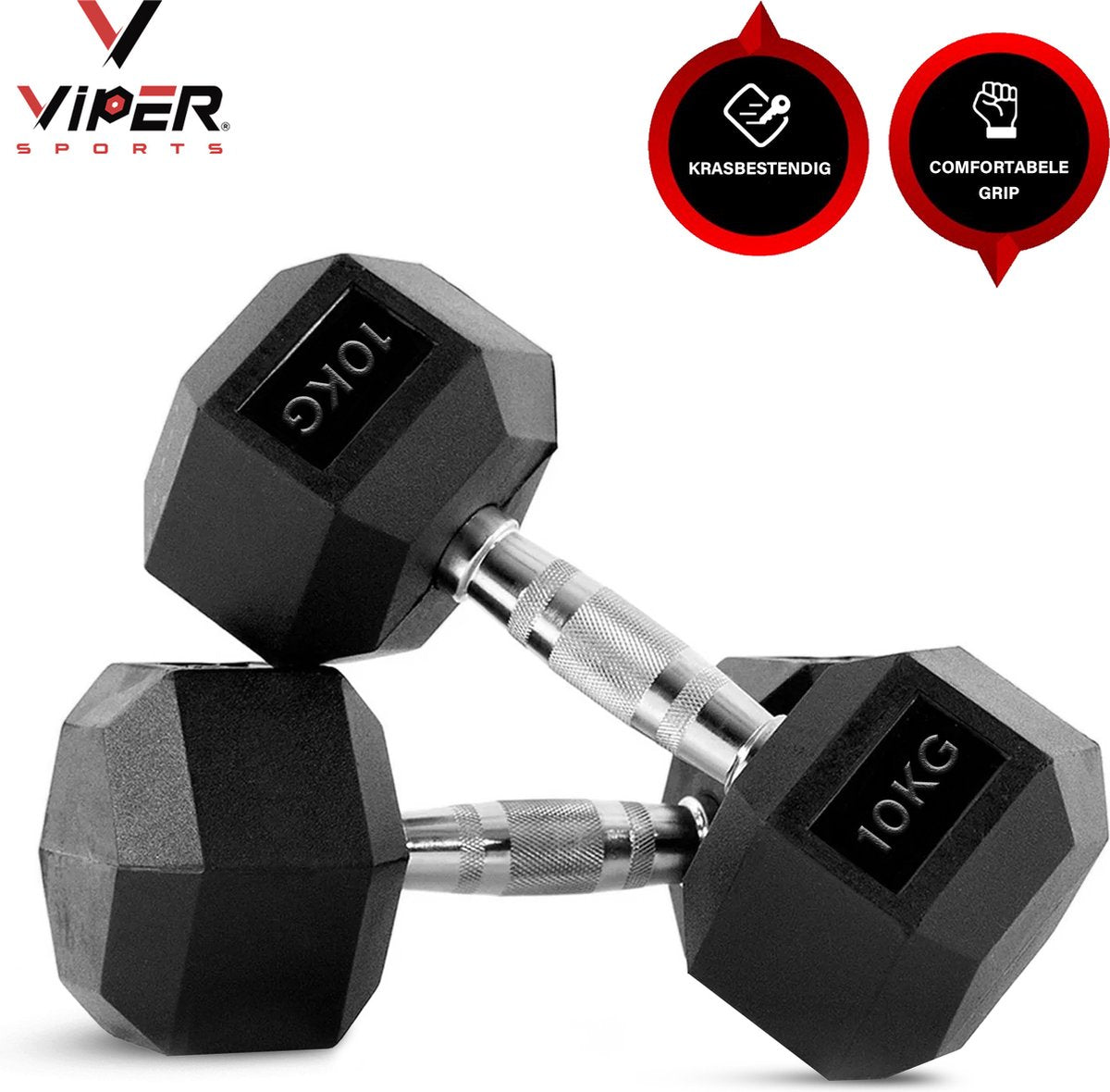 Viper Sports Iron Black Gewichten 2 x 10 kg – Dumbbells – Dumbells set – Anti-slip – Zeshoek design – Hexagon-Design - RVS/Rubber – Zilver/Zwart