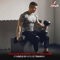 Met een ijzeren handvat dat een fijne grip biedt, zorgen de dumbbells voor een stabiele en veilige trainingservaring. De zeshoekige vorm voorkomt dat de dumbbells wegrollen tijdens het gebruik, waardoor je volledige controle hebt over elke beweging. Of je nu bezig bent met explosieve oefeningen of gecontroleerde krachttraining, deze functie zorgt voor stabiliteit en focus.