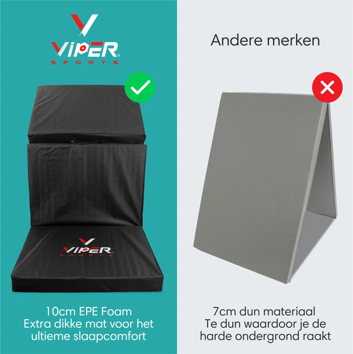 De slaapmatten van Viper Sports zijn gemakkelijk op te vouwen en daardoor handig in gebruik!