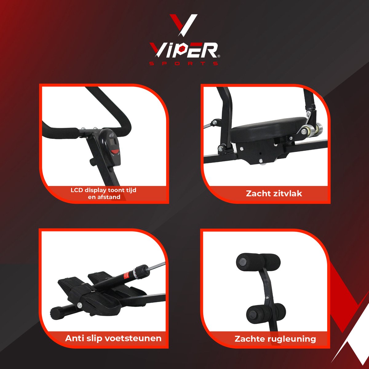 Viper Sports Valkyrie – Roeitrainer – Roeimachine – Hydraulische weerstand – 126 x 46 x 82 cm - Zwart