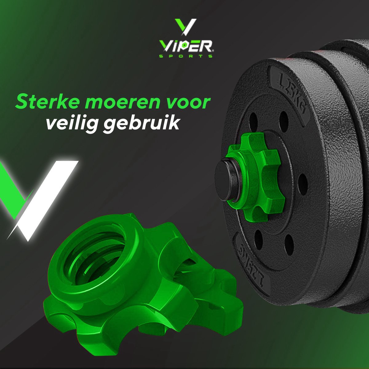 Viper Sports Verstelbare Dumbbell Set tot 30kg – Halterset – 2-in-1 Gewichten – Gebruiksvriendelijke Fitness Stang – Home Gym – Krachttraining – Dumbells - Groen