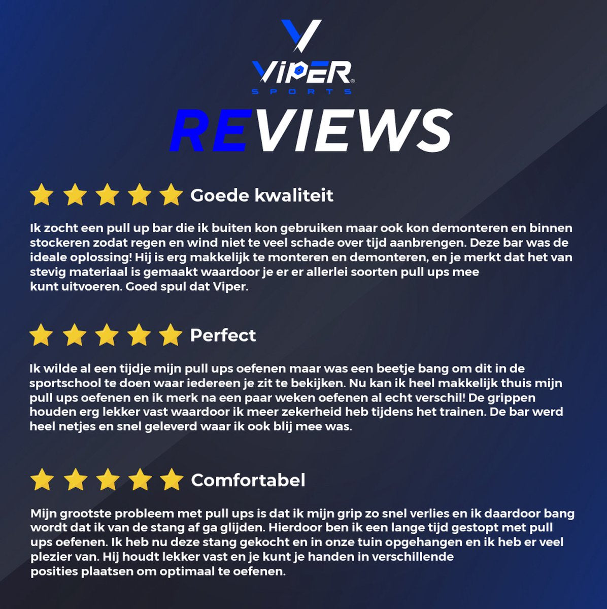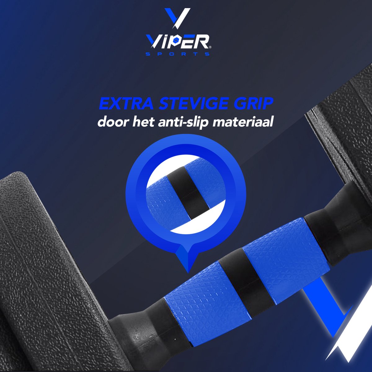 Viper Sports is gemaakt voor én door de Nederlandse fitness liefhebber. De producten van Viper Sports zijn zorgvuldig ontworpen voor de (thuis)sporter. Bij het ontwerpen en samenstellen van de producten is nauwlettend gedacht aan grip, vorm en materialen, zodat iedere beginnende en gevorderde sporter gebruik kan maken van de Viper Sports artikelen. De gym producten zijn uitsluitend gemaakt van sterke materialen, zodat jij elke dag opnieuw kan werken aan jouw sportieve doelstellingen. Viper Sports is een ervaren e-commmerce leverancier in sportartikelen, zo kunt u altijd contact opnemen met de klantenservice en rekenen op de snelst mogelijke levering.