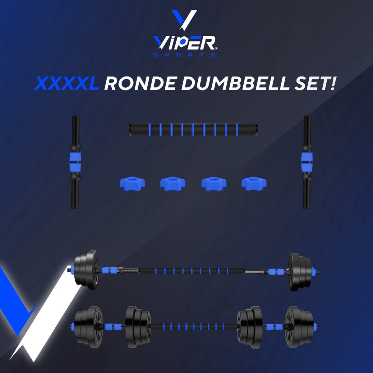 Viper Sports verstelbare dumbbell set tot 40 kg – Halterset – Professionele 2-in-1 Halterset met gewichten – Krachttraining – Gebruiksvriendelijke Fitness Halterstang – Dumbell - Blauw
