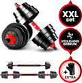 Let op! Het totale geleverde gewichten is 40 kg. Mocht je er voor kiezen om dumbbells te maken, krijg je dus 2 dumbbells van elk maximaal 20 kg.