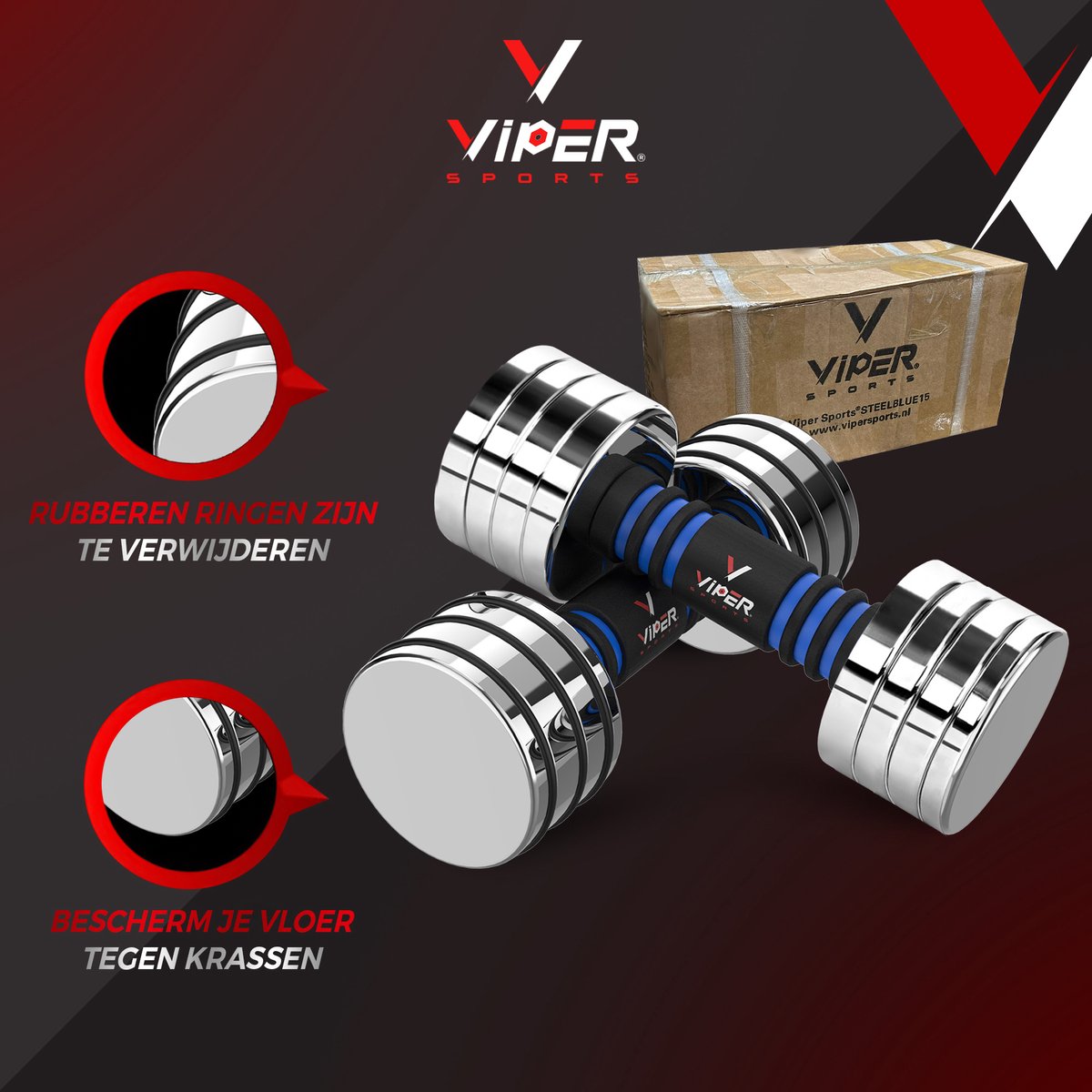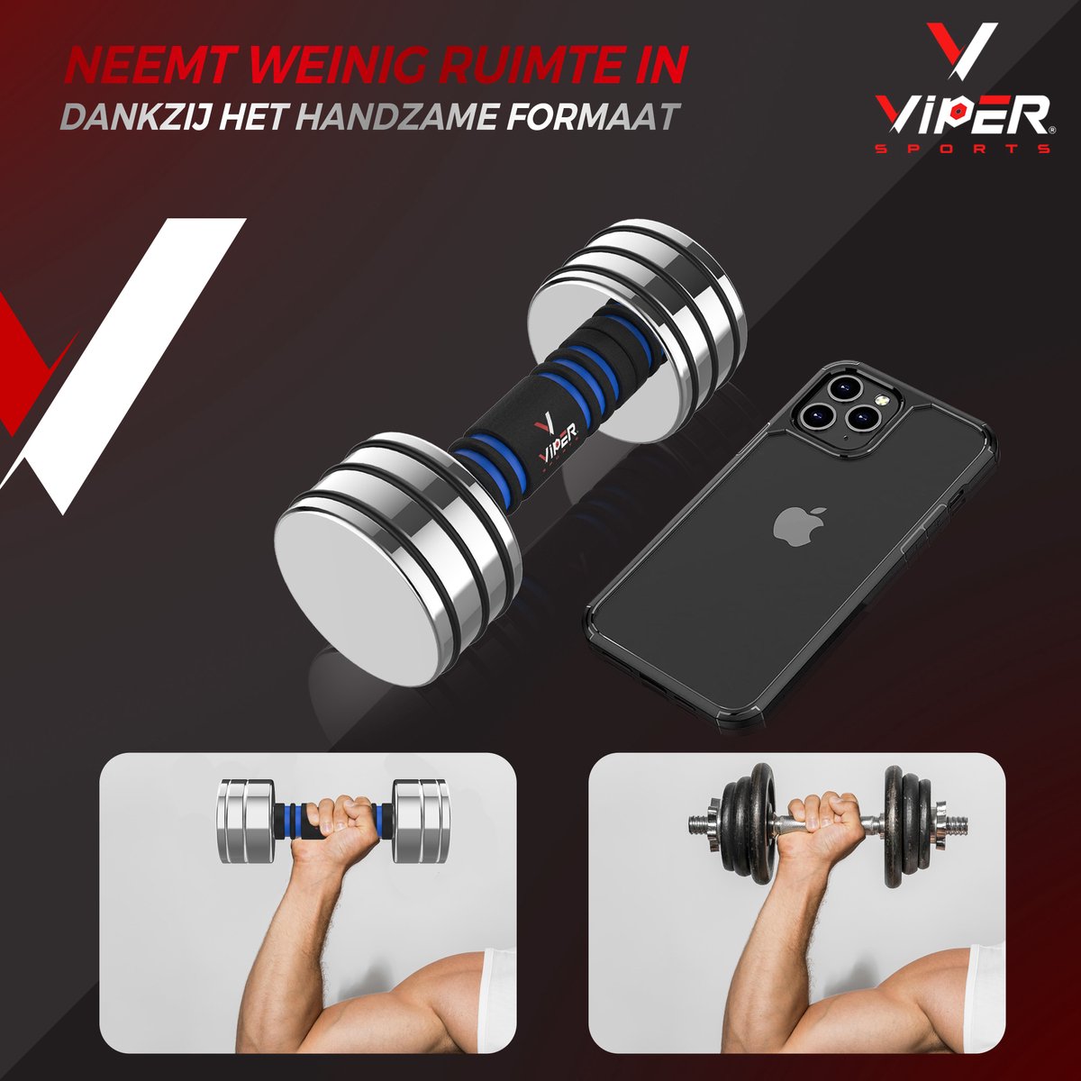 Viper Sports Verstelbare gewicht 15 kg – Dumbbells – Anti-slip – Mirror finish - RVS/Foam – Steel Blue - 1 Stuks