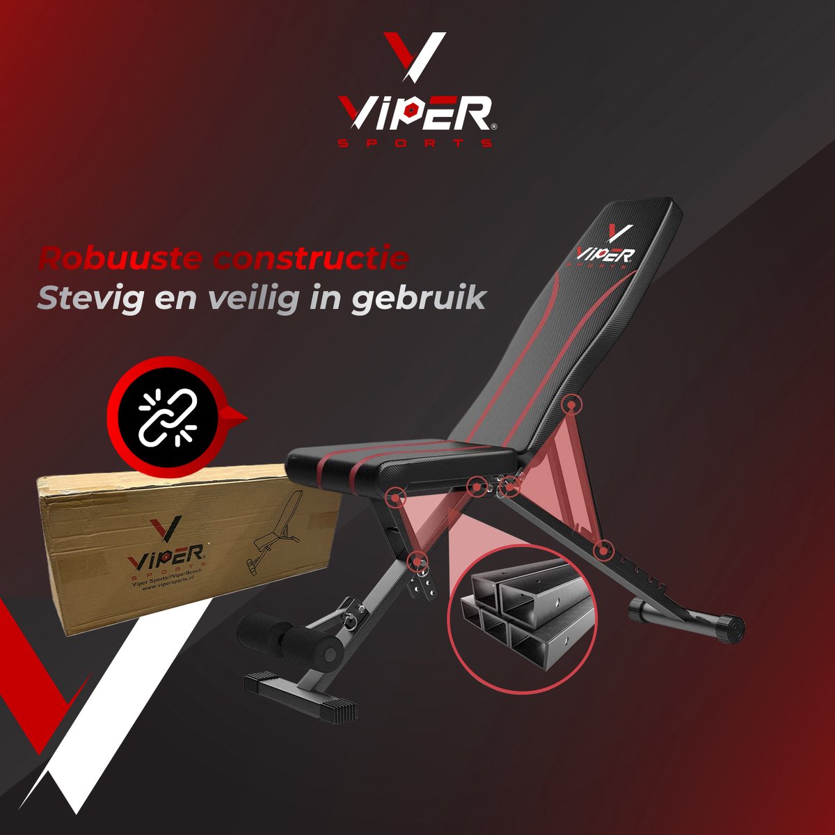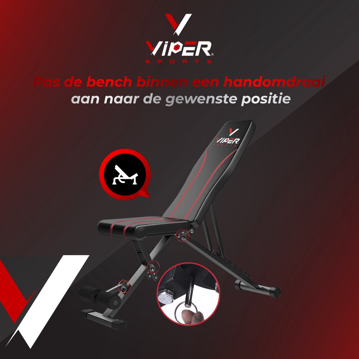 Viper Sports Viper Bench – Halterbank – Trainingsbank – Fitnessbank – Bench Press – Verstelbaar - 93 x 110 x 31 cm – Zwart/Rood