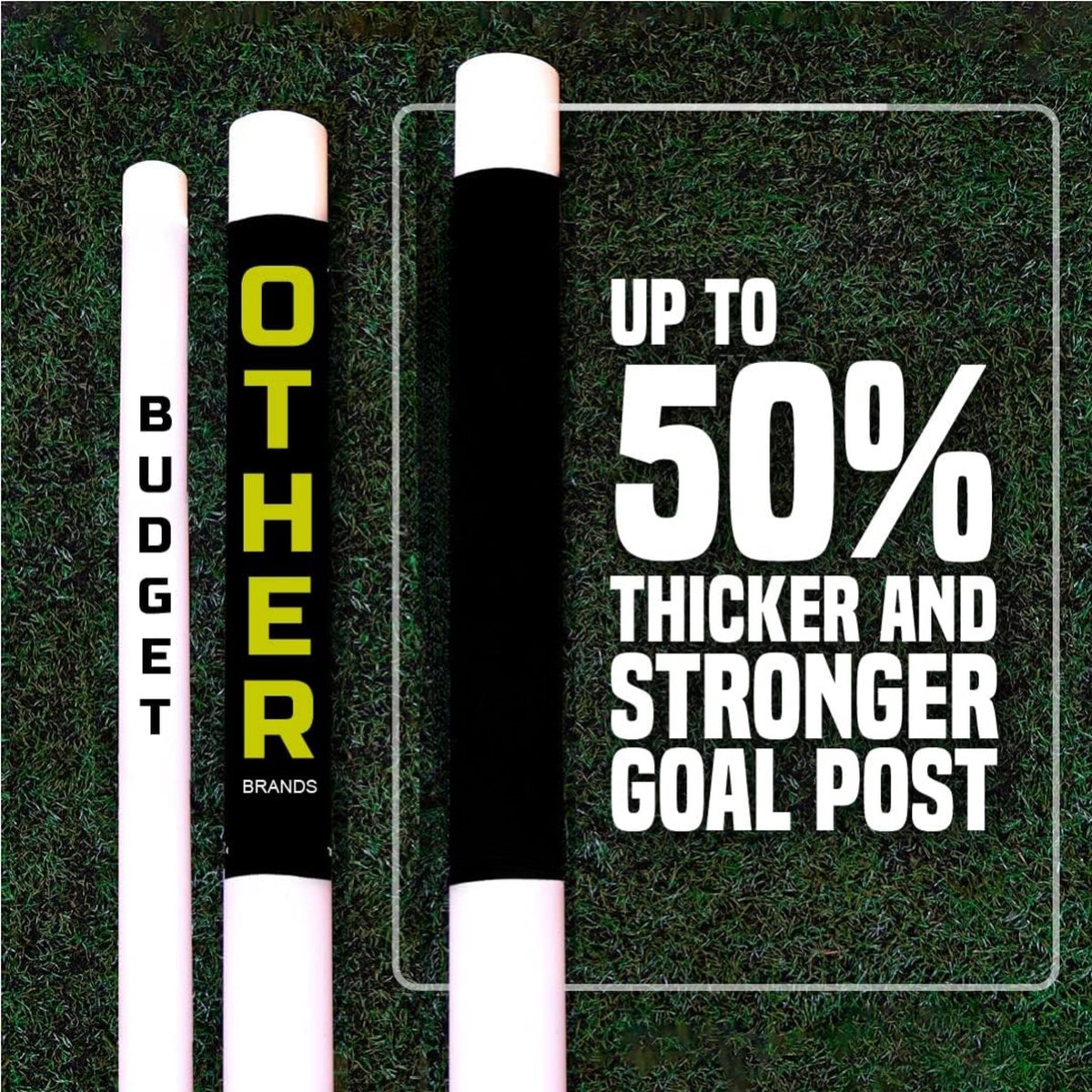 - All Weather Frames: Alle vier formaten van dit doel zijn UV-behandeld, zodat ze het hele jaar door in alle weersomstandigheden buiten kunnen blijven staan. Dit in tegenstelling tot andere doelen die mogelijk gevoeliger zijn voor weersinvloeden.