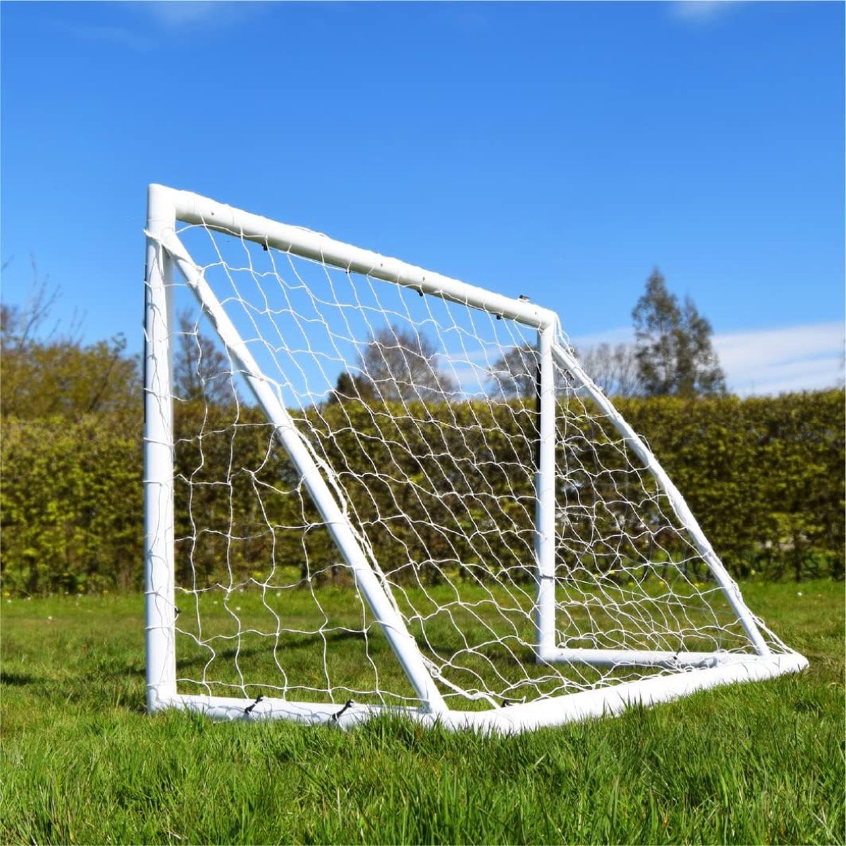 - Markt Leidende 70mm Frame & Palen: Het voetbaldoel heeft ultra hoge impact PVC 70mm palen en frame om zelfs de sterkste en krachtigste aanvallen te weerstaan. Met breukbestendige palen en ultra dikke versterkte hoeken, is dit doel gebouwd om lang mee te gaan.