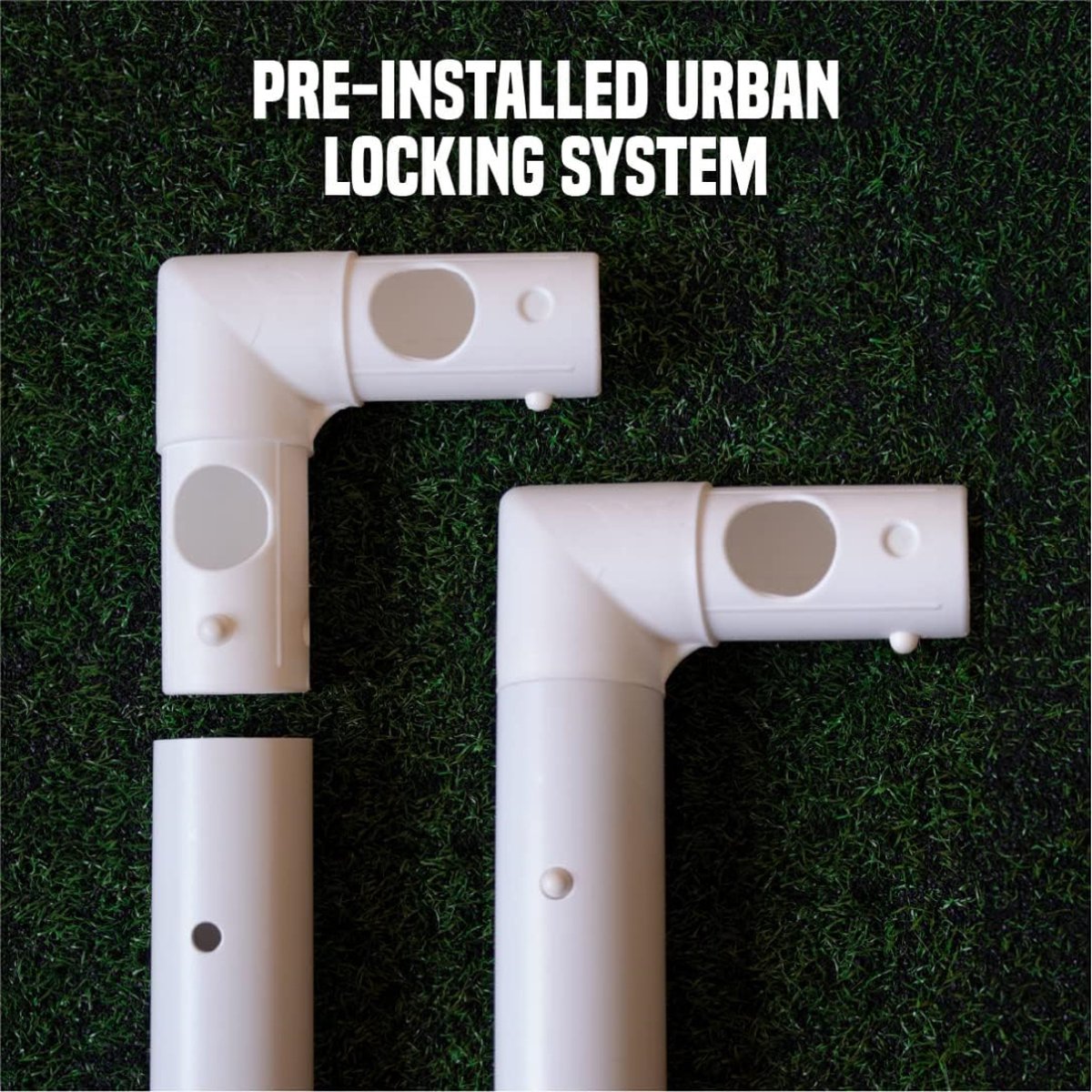 - Urban Vergrendelsysteem: Dit voetbaldoel beschikt over een van de weinige vooraf geïnstalleerde, geïntegreerde vergrendelingssystemen, essentieel voor ultieme stevigheid en stabiliteit. De eenvoudige bouwinstructies zorgen ervoor dat je het doel in enkele minuten kunt monteren en demonteren.
