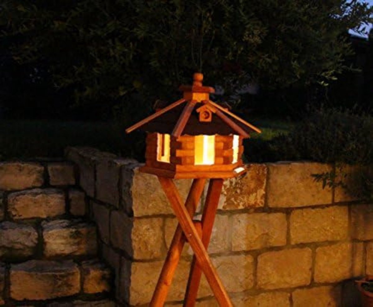- Het houten vogelhuisje met standaard en zonne-energie is alleen verkrijgbaar in de houtdecoratie.