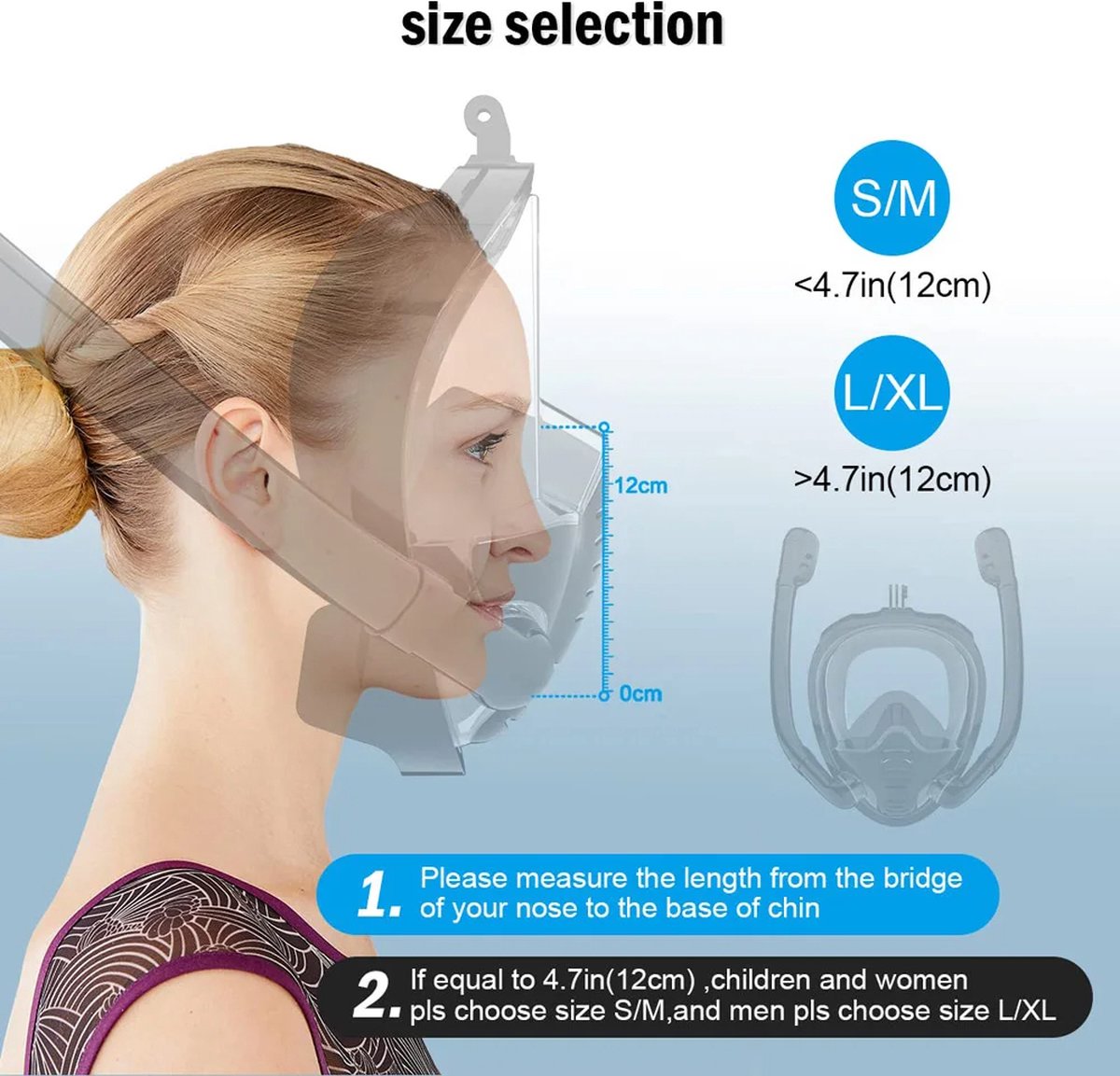 Ervaar de ultieme onderwaterbeleving met ons volledig gezicht snorkelmasker. Dit geavanceerde masker is ontworpen voor zowel beginnende als ervaren snorkelaars en duikers die op zoek zijn naar een panoramisch uitzicht en ongeëvenaarde comfort tijdens hun avonturen in het water. Met een 180° panoramisch zicht, een siliconen droge top, en geavanceerde anti-fog en anti-lek technologie, biedt dit snorkelmasker alles wat je nodig hebt voor een geweldige ervaring.