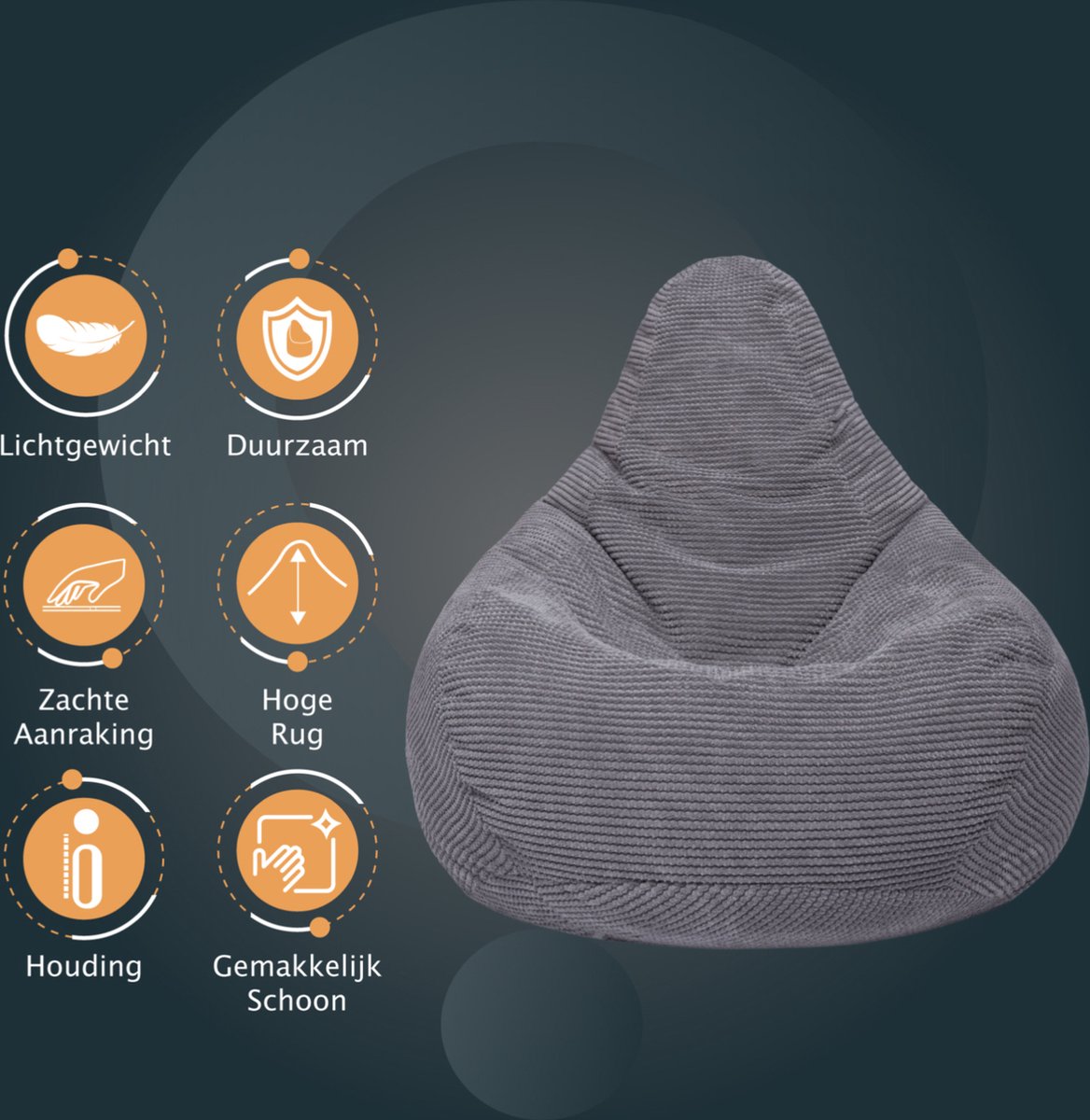 De zitzak is zeer duurzaam en toch ongelooflijk comfortabel vanwege de hoge rug. Ideaal voor ieder gezinslid om te ontspannen en tot rust te komen terwijl je je favoriete boek leest, met het gezin chillt voor de tv of knuffelt met een geliefde. De zitzak voor volwassenen is lichtgewicht en gemakkelijk te verplaatsen.