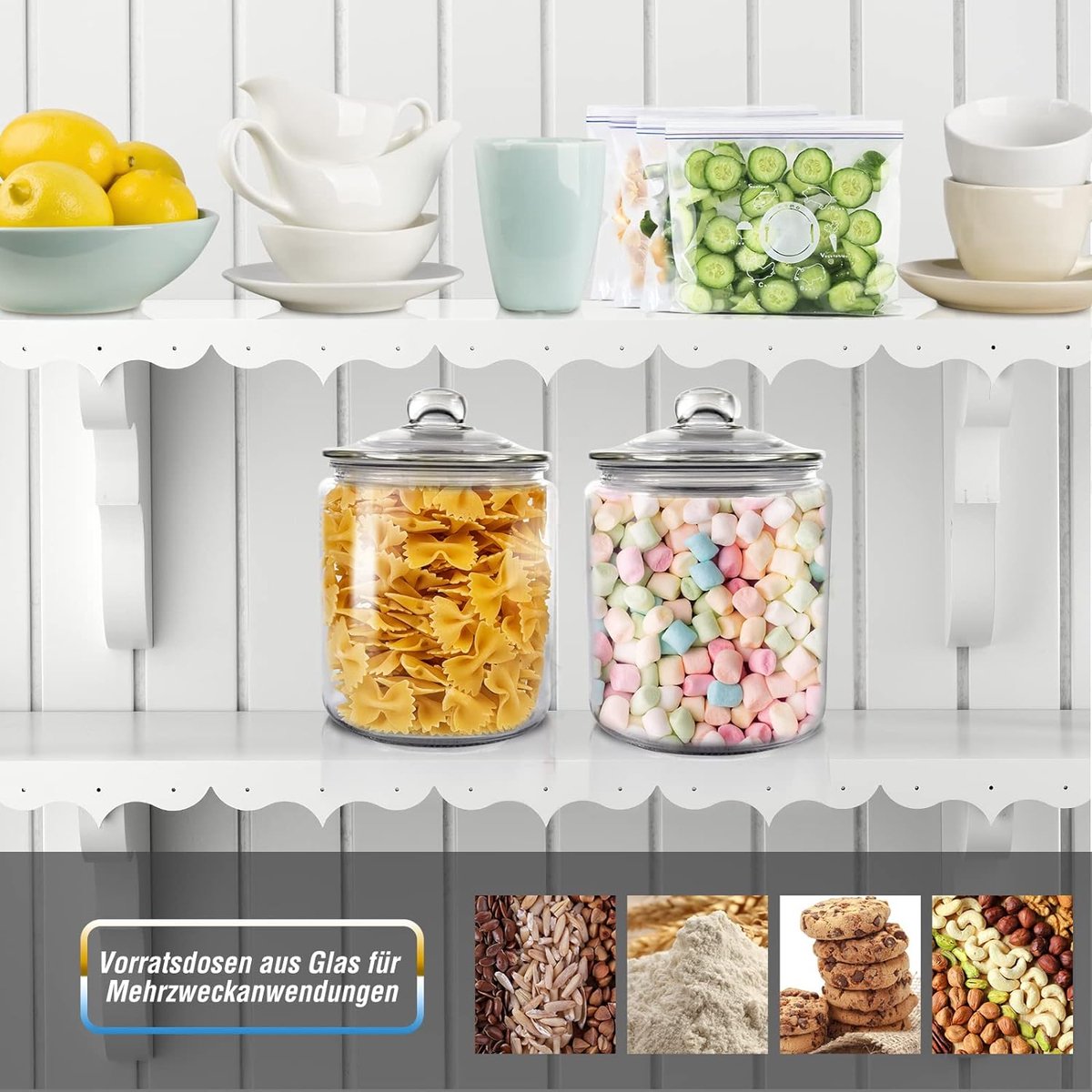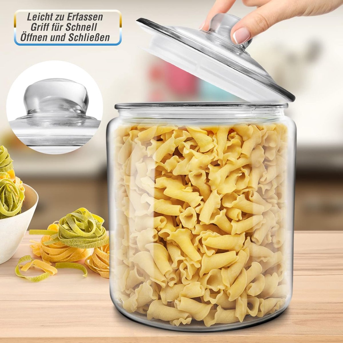 • Grote inhoud 3,9 l: de set bevat 2 glazen potten met grote inhoud, elk met een inhoud van 3,9 liter, afmetingen: 16 x 26 cm. Als voorraadpotten met deksel, bevat grote hoeveelheden koekjes, snoep, pasta, noten, jam, meel, fruit, groenten en andere levensmiddelen.