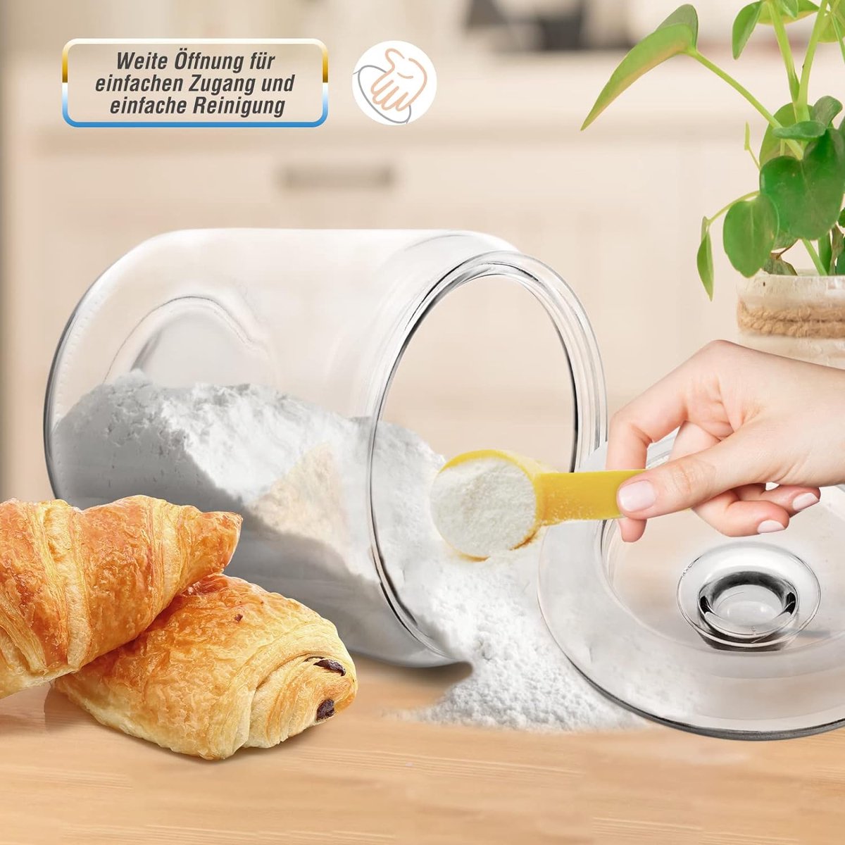 • Voedselveilig glas: deze glazen koekjesdoos is gemaakt van hoogwaardig borosilicaatglas, dat duurzamer en minder gevoelig is voor beschadigingen dan gewoon glasmateriaal. De glazen potten zijn BPA-vrij, veilig, niet giftig en herbruikbaar.