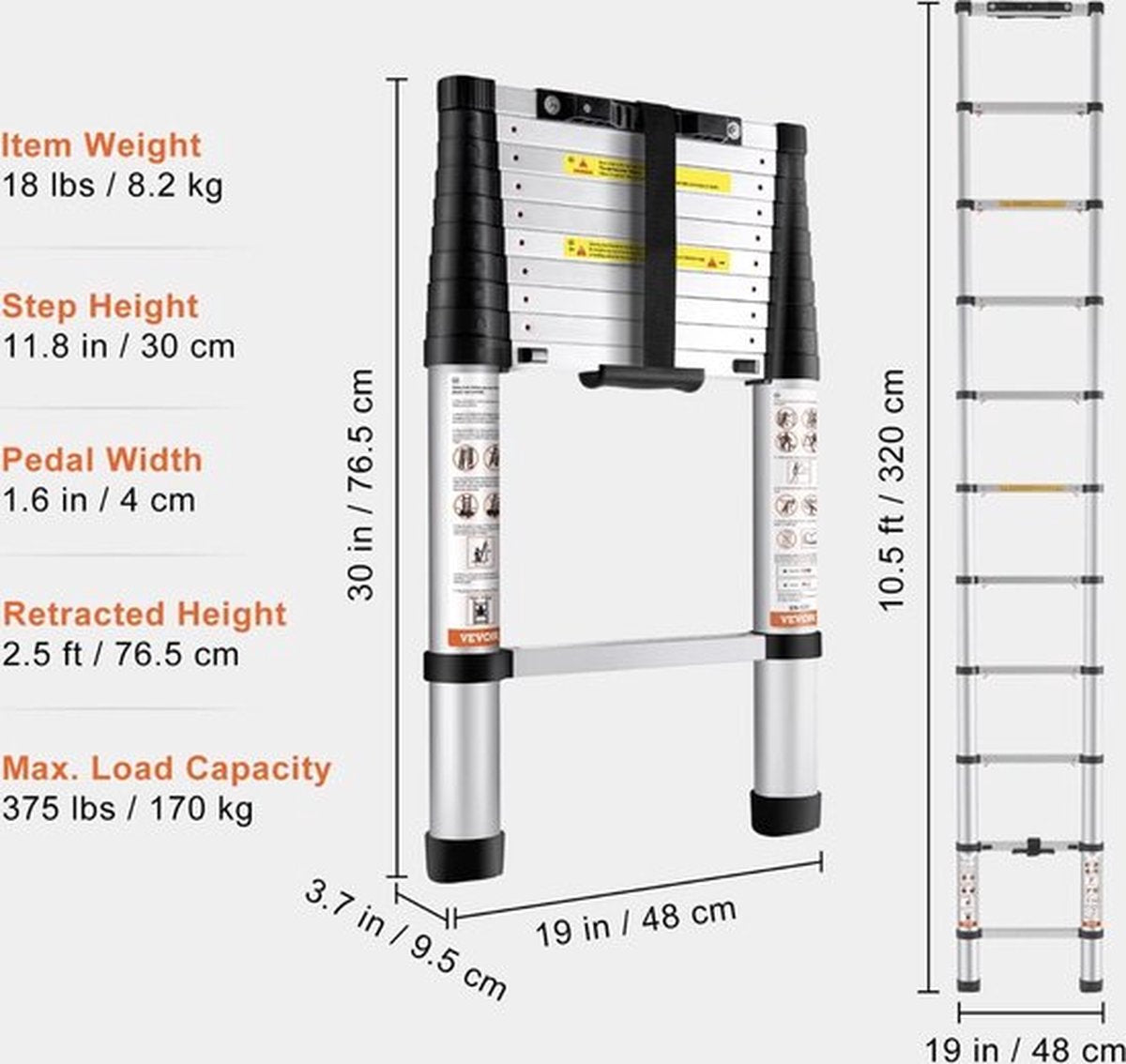 5. **Veelzijdig in gebruik:** Met een maximale hoogte van 12,5 ft (3,8 m) is deze ladder geschikt voor een breed scala aan huishoudelijke en buitenklussen, van decoreren tot boom snoeien.