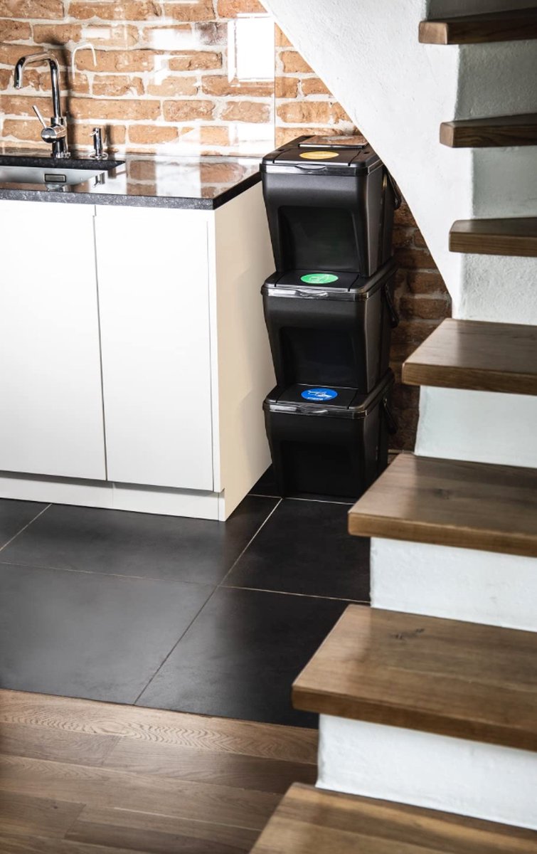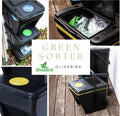• De emmers kunnen zowel binnen als buiten worden gebruikt en zijn volledig gemaakt van robuuste, gerecyclede materialen. Green Sorters zijn gemaakt van hoogwaardig kunststof, dat bestand is tegen beschadigingen en jarenlang houdbaar blijft. De emmers zijn stapelbaar en nemen daarom weinig ruimte in. Een systeem van lussen en gaten zorgt voor een stabiele positionering.