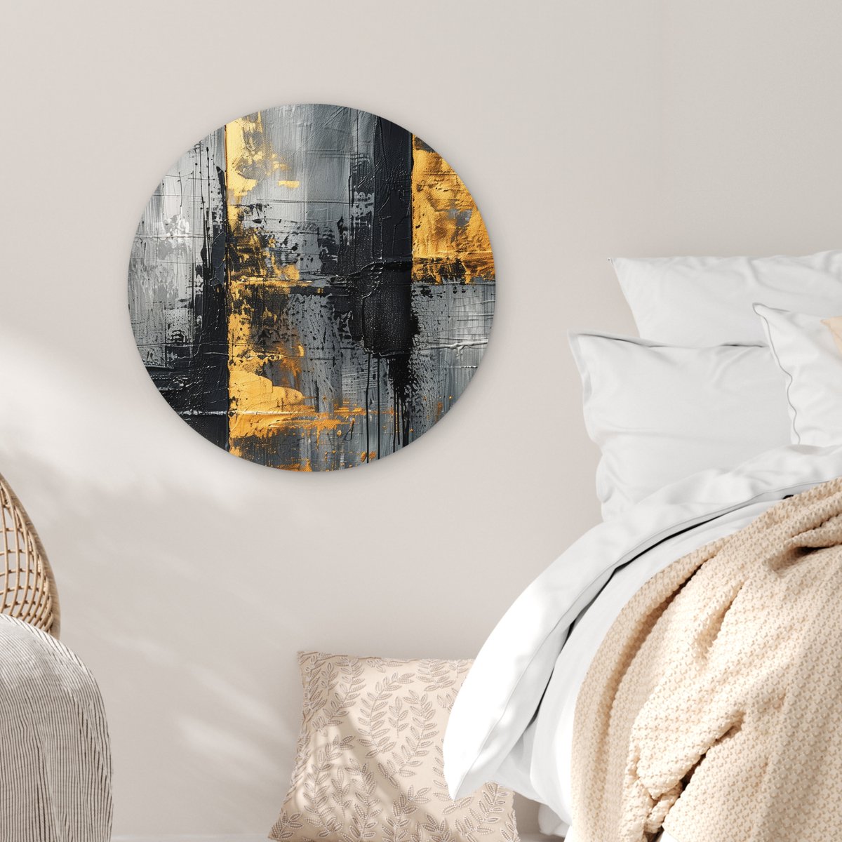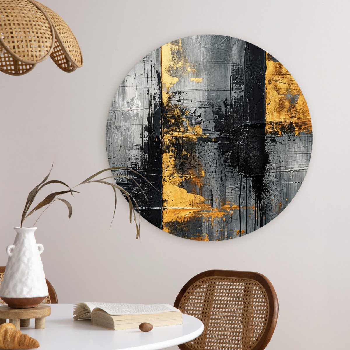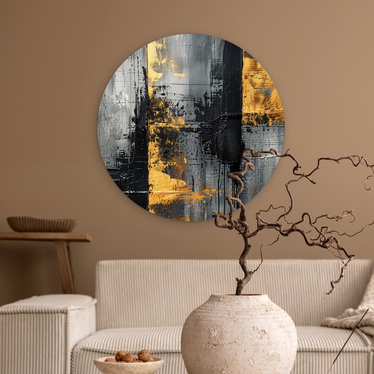 WallCircle® Wandcirkel 60x60 cm - Muurcirkel Modern - Goud - Grijs - Patroon - Abstract - Luxe - Muurdecoratie woonkamer - Wanddecoratie slaapkamer - Kamer decoratie accessoires - Ronde schilderijen - Woonaccessoires binnen cirkel