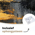 Over de afbeelding Abstracte print met zwarte en gouden tinten.