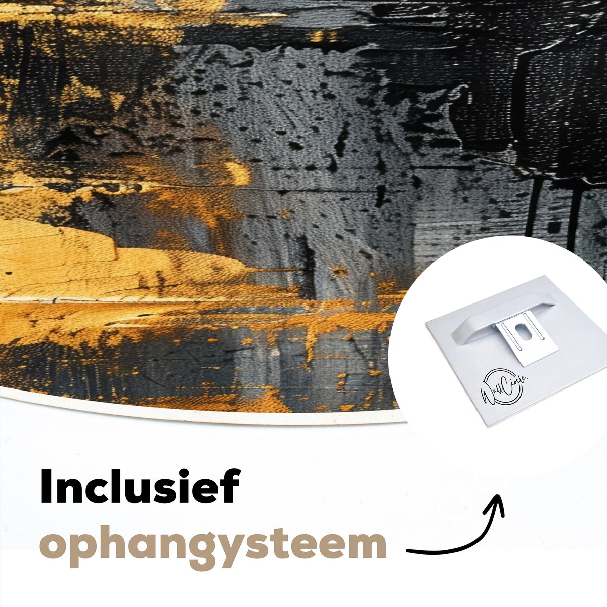 De ronde schilderijen worden gemaakt van Forex. Forex is een lichte, maar stevige, kunststof plaat en is geschikt voor binnen. De muurcirkel is makkelijk op te hangen door het GRATIS is bijgeleverde ophangsysteem, ter waarde van €12,50!