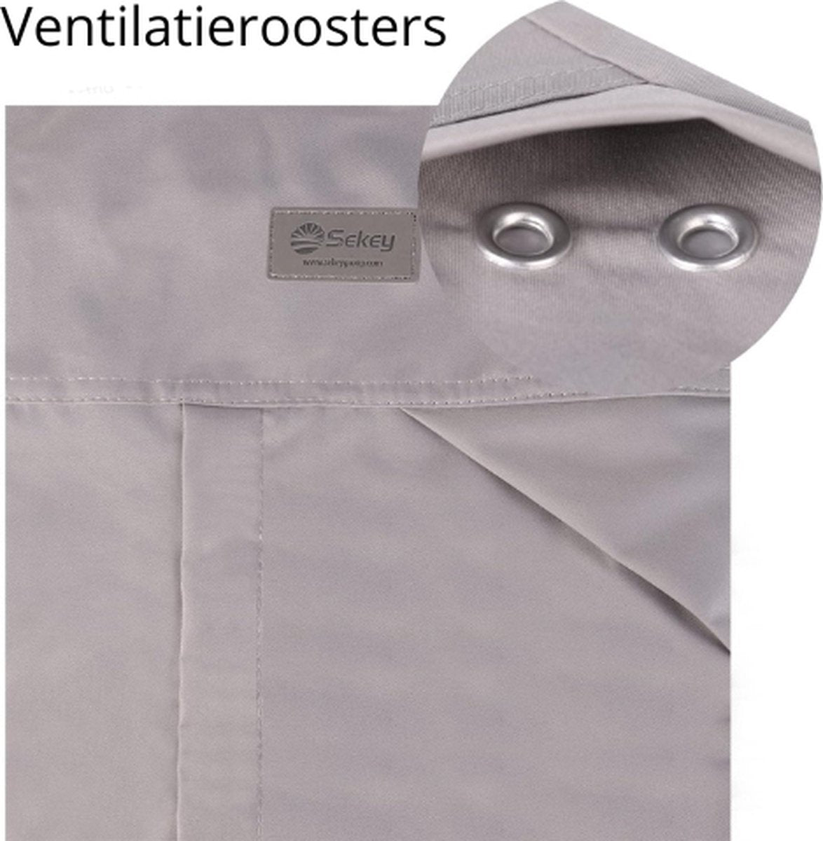 Doordacht Ontwerp: De hoes is slim ontworpen met ventilatieopeningen die windspleten voorkomen en schimmelvorming tegengaan. Dit betekent dat je parasol altijd fris en in optimale staat blijft, ongeacht het weer.