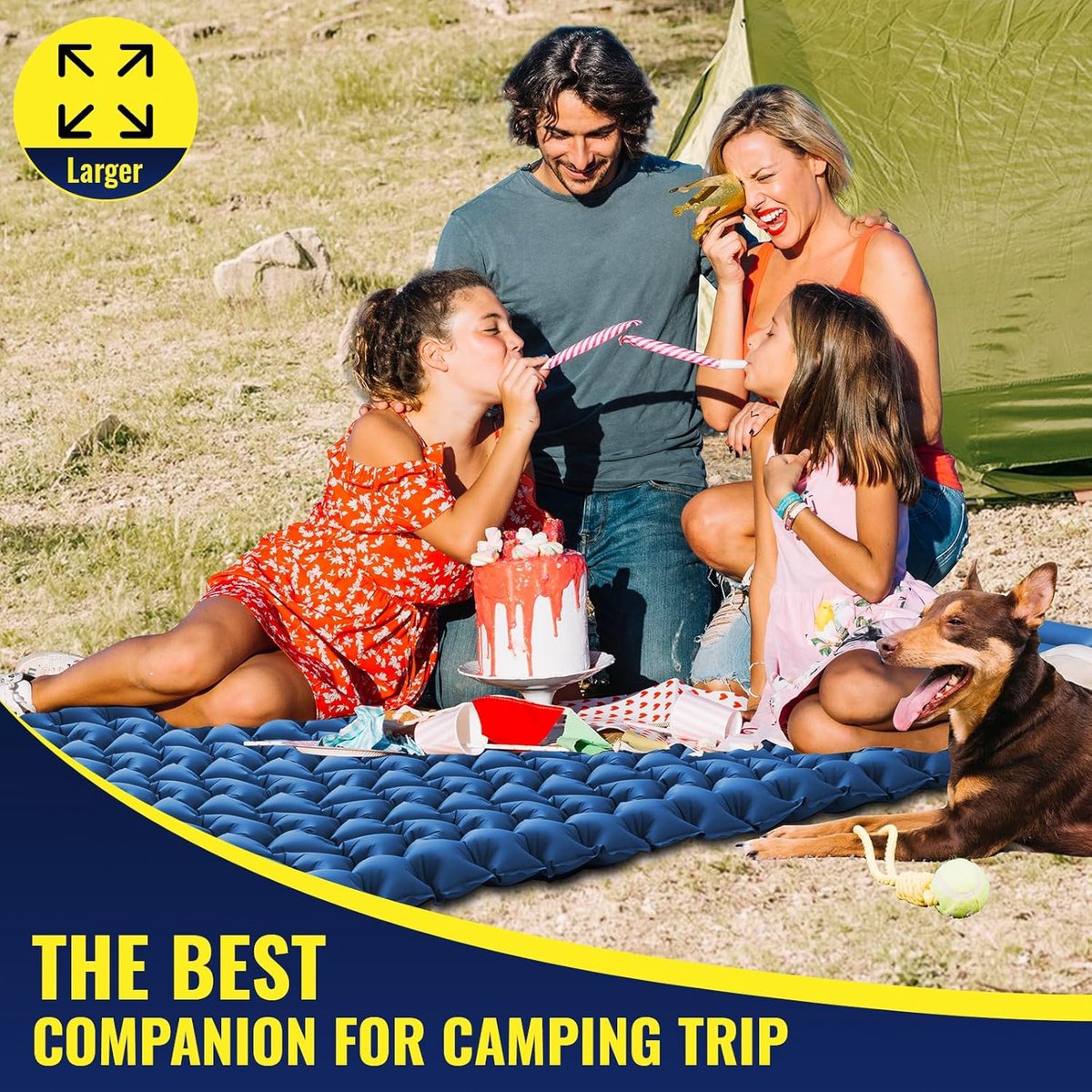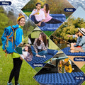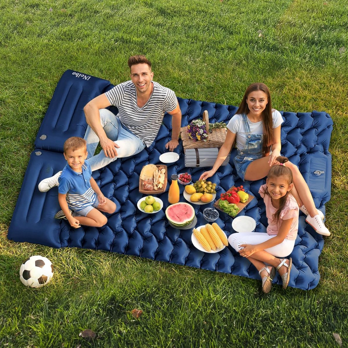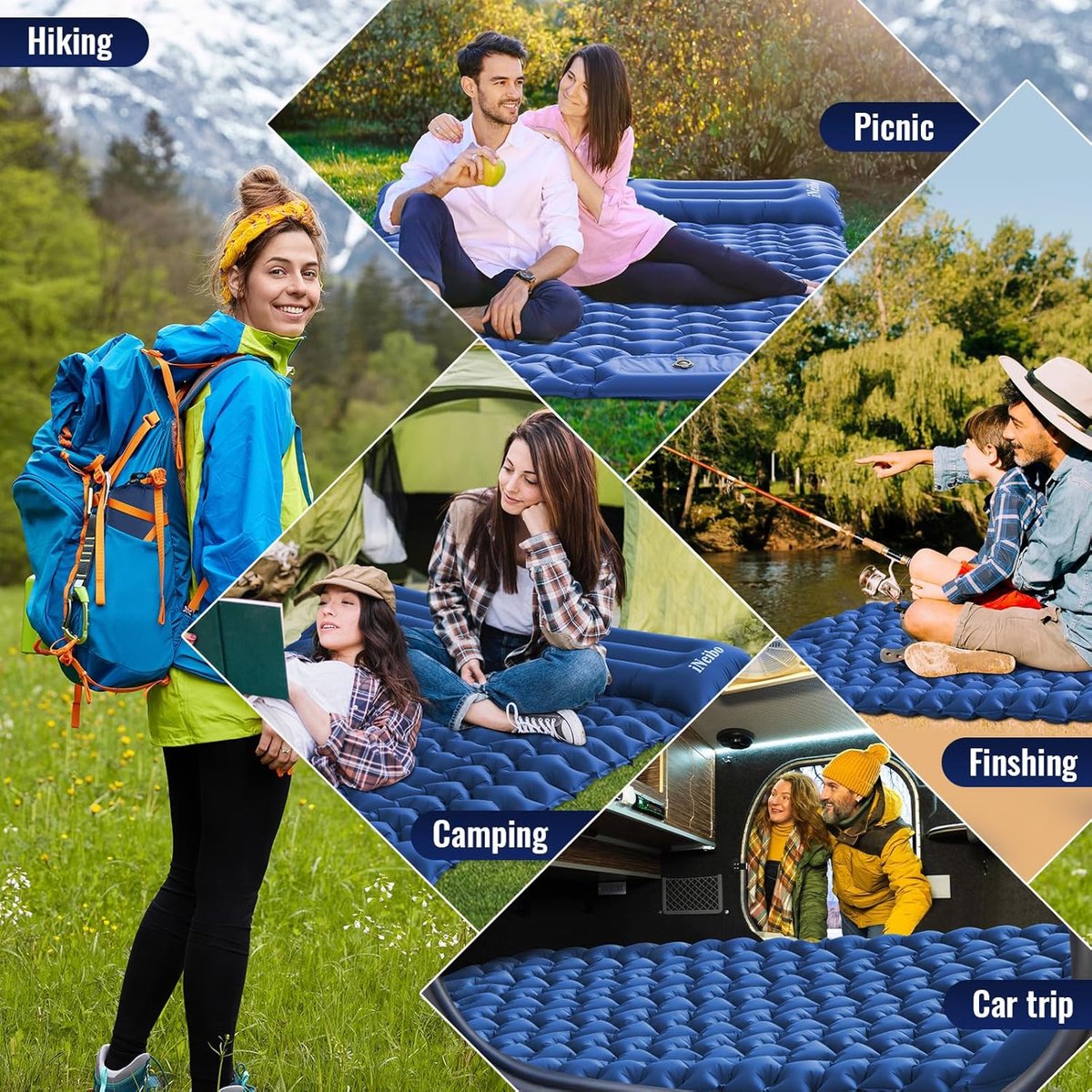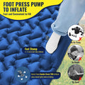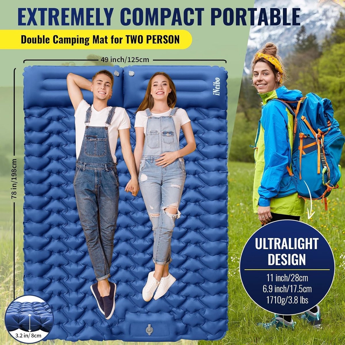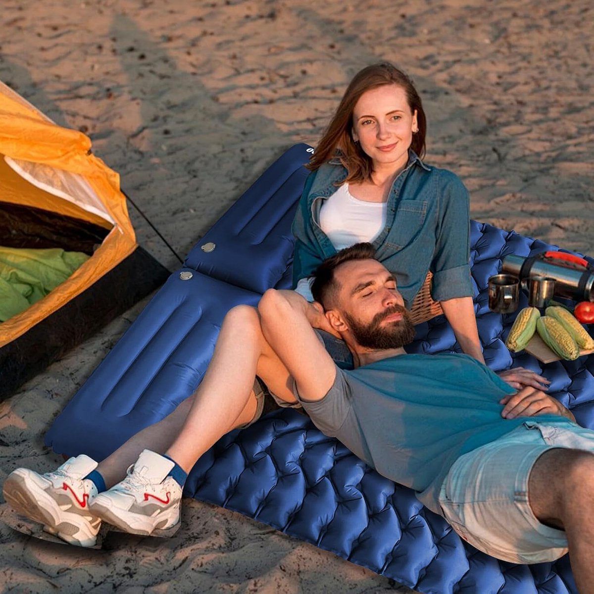 Zelfopblazende slaapmat, 2 personen, luchtmatras voor buiten, zelfopblazend met voetperspomp en kussen, campingmatras voor 2 personen, voor buiten, wandelen, strand en kamperen, blauw