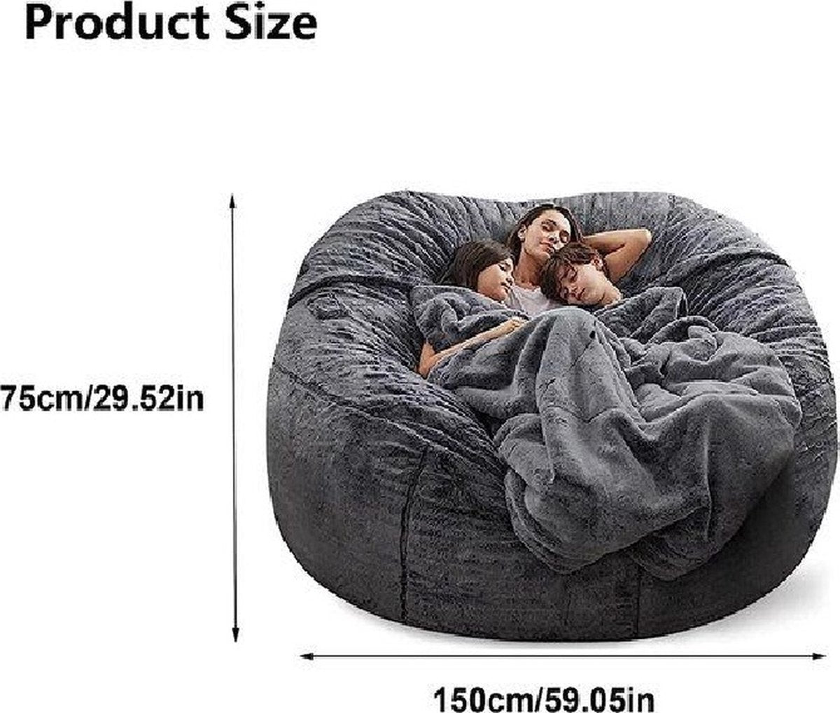 Zitzakhoes XXL - 150 x 75 cm - Bean Bag - Zonder vulling - Donkergrijs - Wasbaar - Zacht en behaaglijk