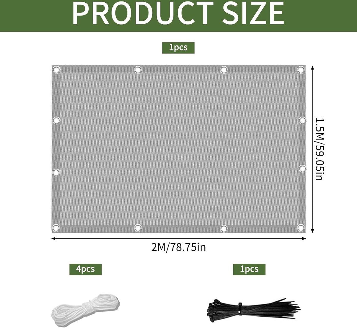 Zonnezeil, waterdicht, rechthoekig, 1,5 x 2 m, schaduwnet inclusief bevestigingskoord, zeildoek, waterdicht, zonwering, balkon, zonder boren, voor balkon, terras en tuin.